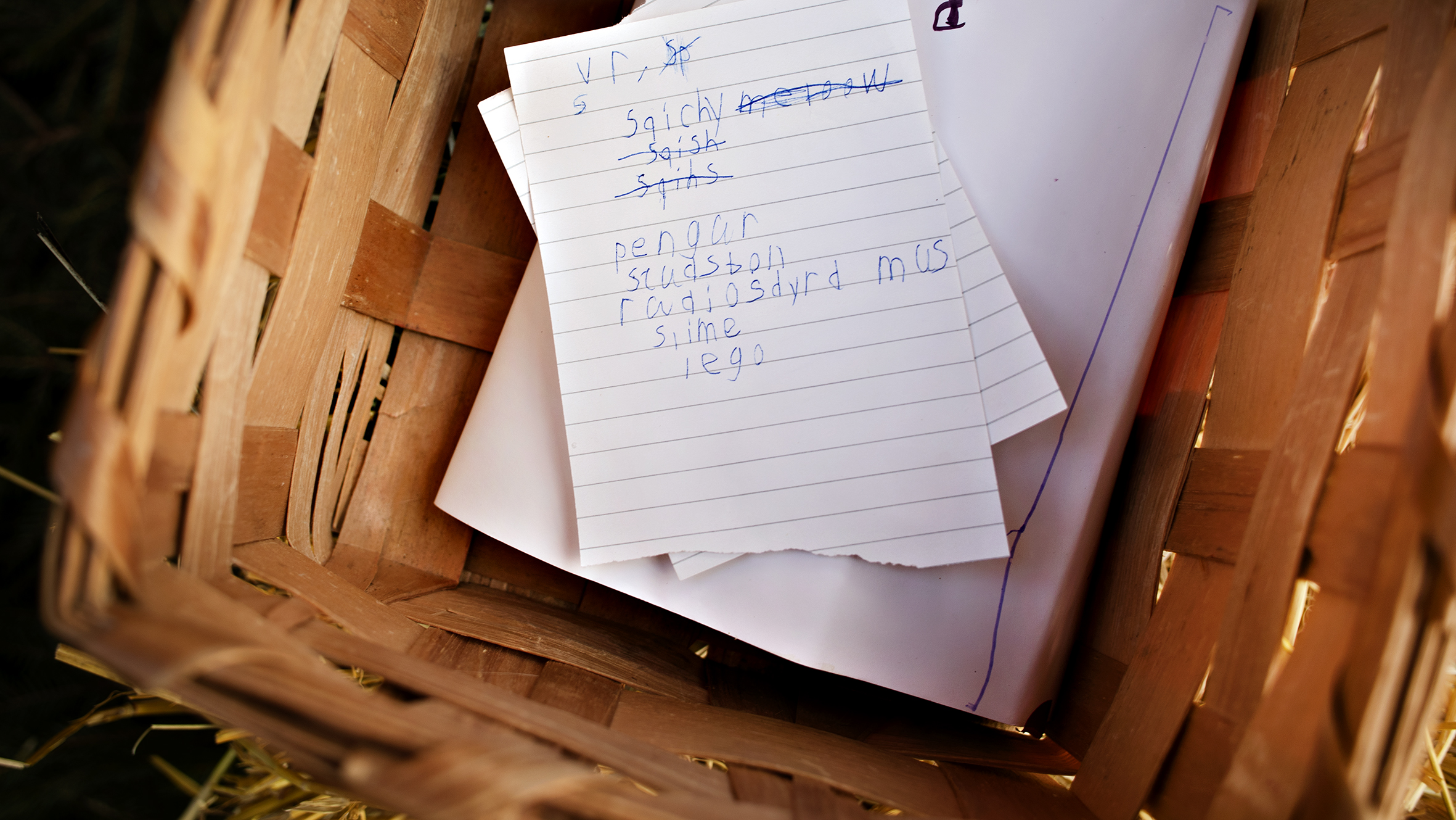 På de namnade lapparna står allt ifrån rutchkana, pengar, studsboll, lego till pengar och slime.