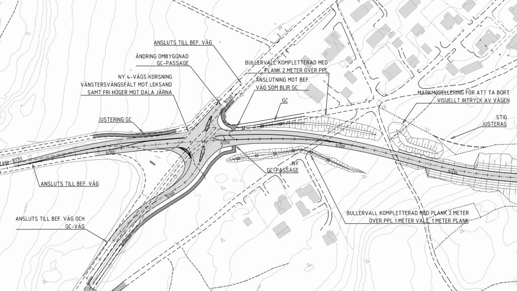 Den karta som finns just nu visar att vägsträckningen vid Moskogskorsningen kan komma att ändras en aning där Moskogsvägen bland annat kan bli huvudled. Sjöberg poängterar dock att man ännu inte har ett helt slutgiltigt förslag.