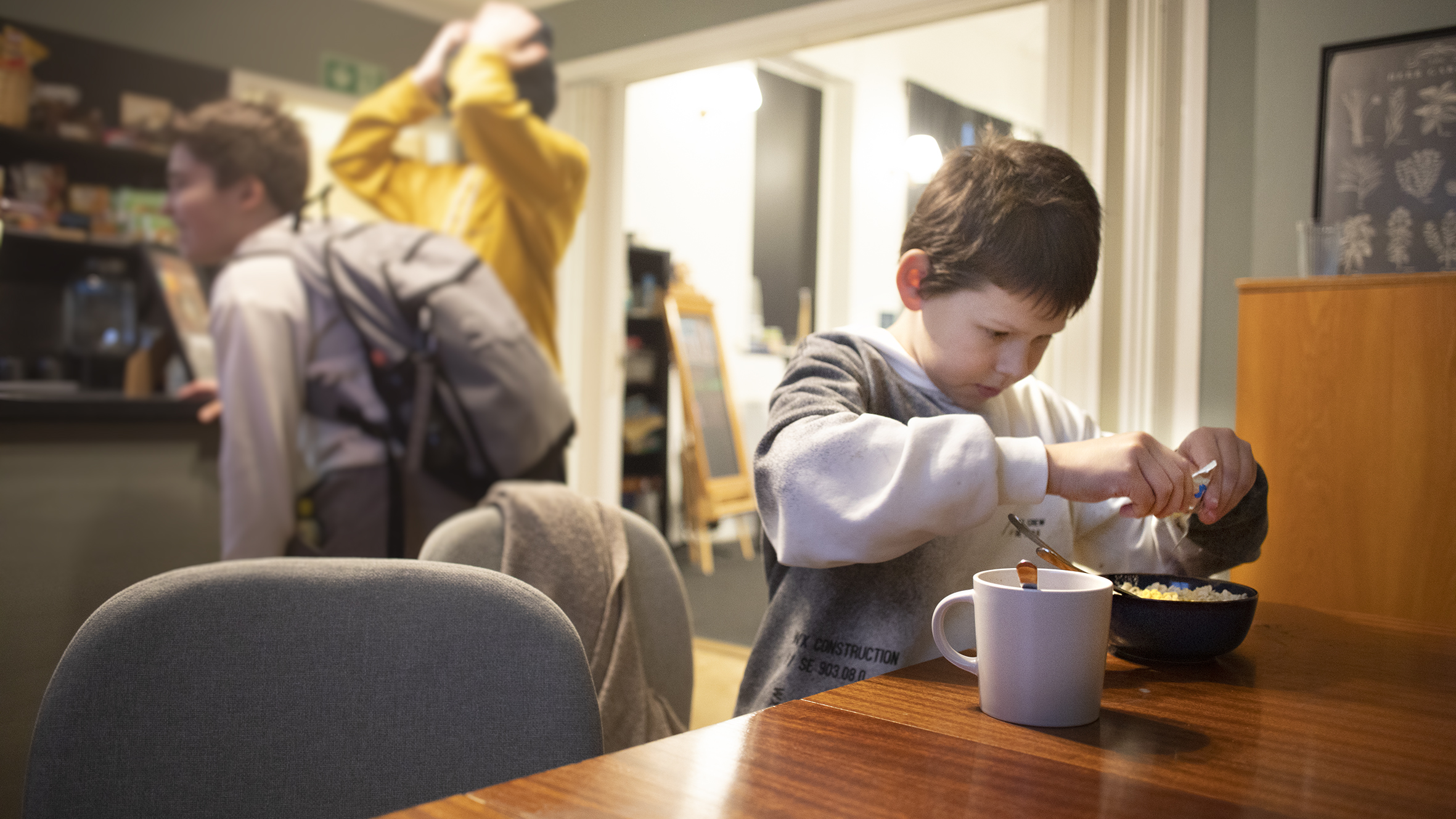 — Här kan jag göra saker som jag inte kan göra hemma, som att spela trummor. Jag önskar mig trummor i julklapp, berättar han och visar vägen upp för trappen till musikrummet.
