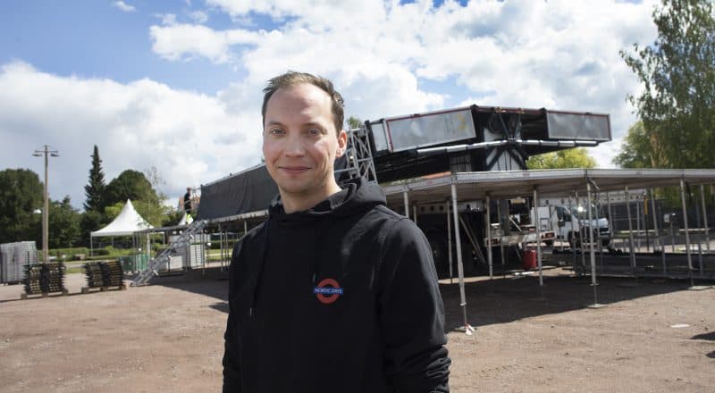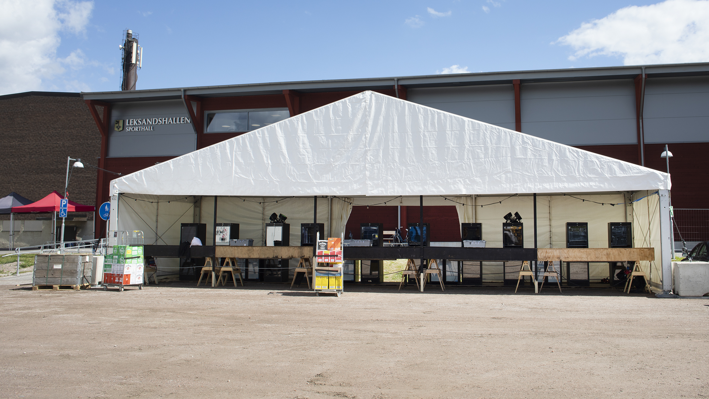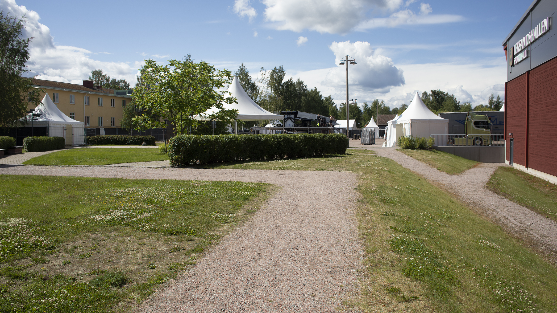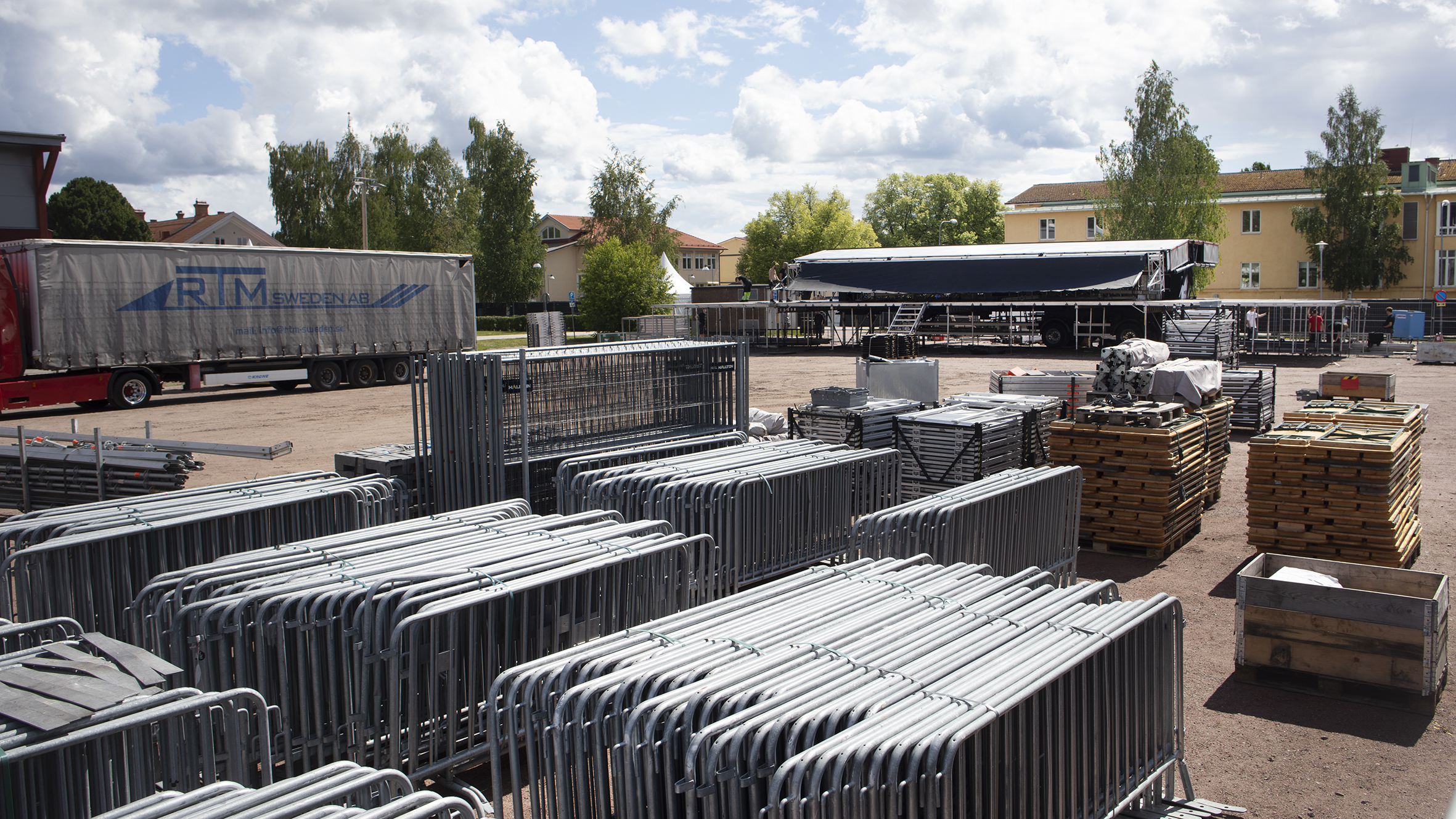 Parkeringsområden utanför Tegera Arena och Leksandshallen är nu avspärrade och bakom inhägnaden pågår febril aktivitet. Mitt på den stora grusplanen står en av de ansvariga för arrangemanget, en glad Robin Olausson, tillsammans med de etthundrafemtio festivalarbetarna gör han Midsommarfesten möjlig.