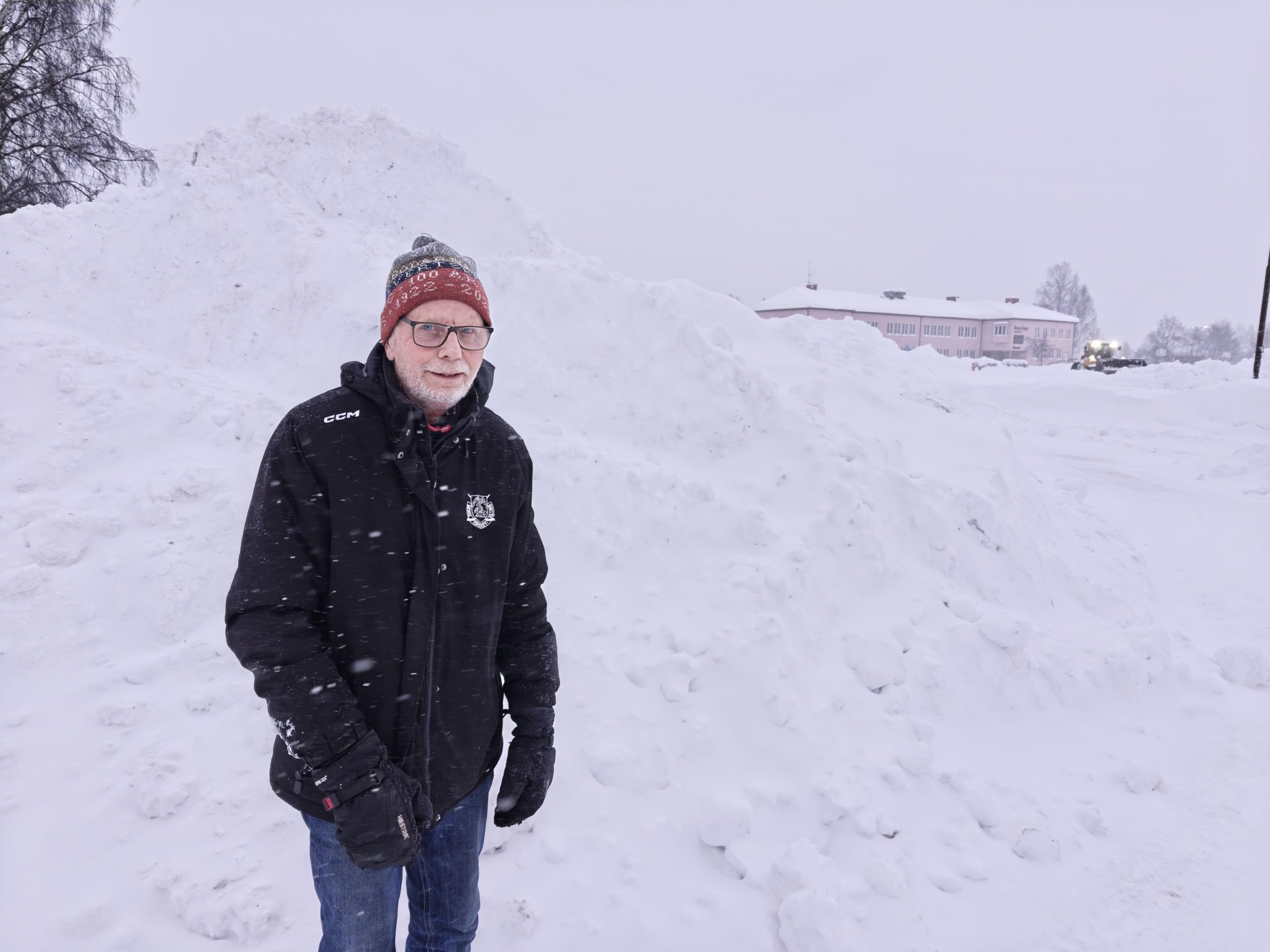 Lars Engberg är en av de som fått kämpa med snön det senaste. Än så länge går det bra för honom, men det blev jobbigt när halva hans infart var täckt med snö – sen hög om plogats upp när vägen intill skulle göras körbar. Foto: Christoffer Landgren.