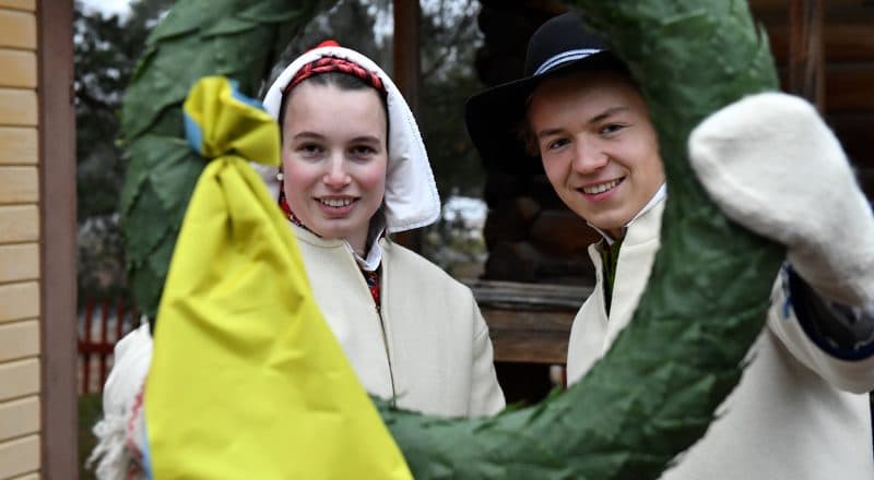 Emelie och Gustaf väntar med krans men ingen kram