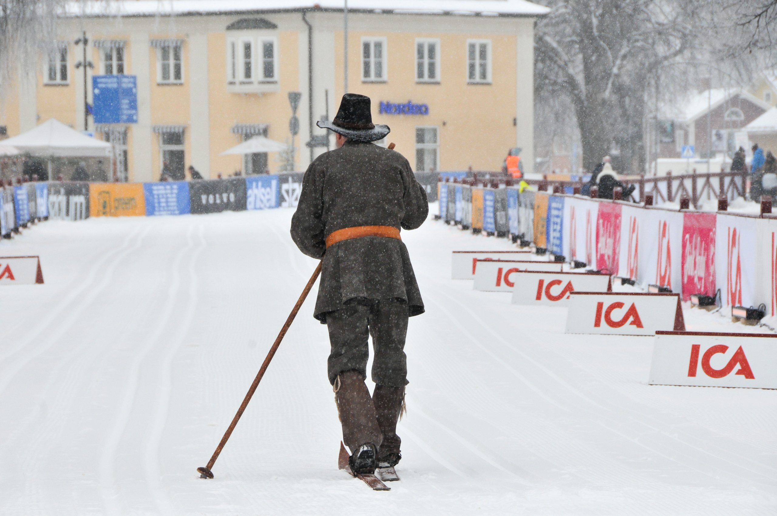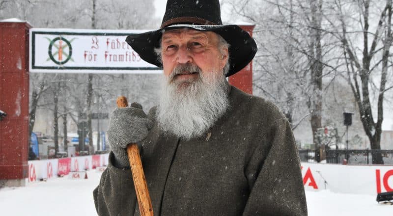 Det finns mycket erfarenhet hos den skäggige mannen med staven och de gammaldags skidorna. Nils “Nisse” Nyström ska föreställa Gustav Eriksson Vasa – förgrundsgestalten till hela arrangemanget – där uppgiften är att såväl välkomna åkare in i mål som underhålla publiken. Jobbet som “Gustav Vasa” har han haft länge.