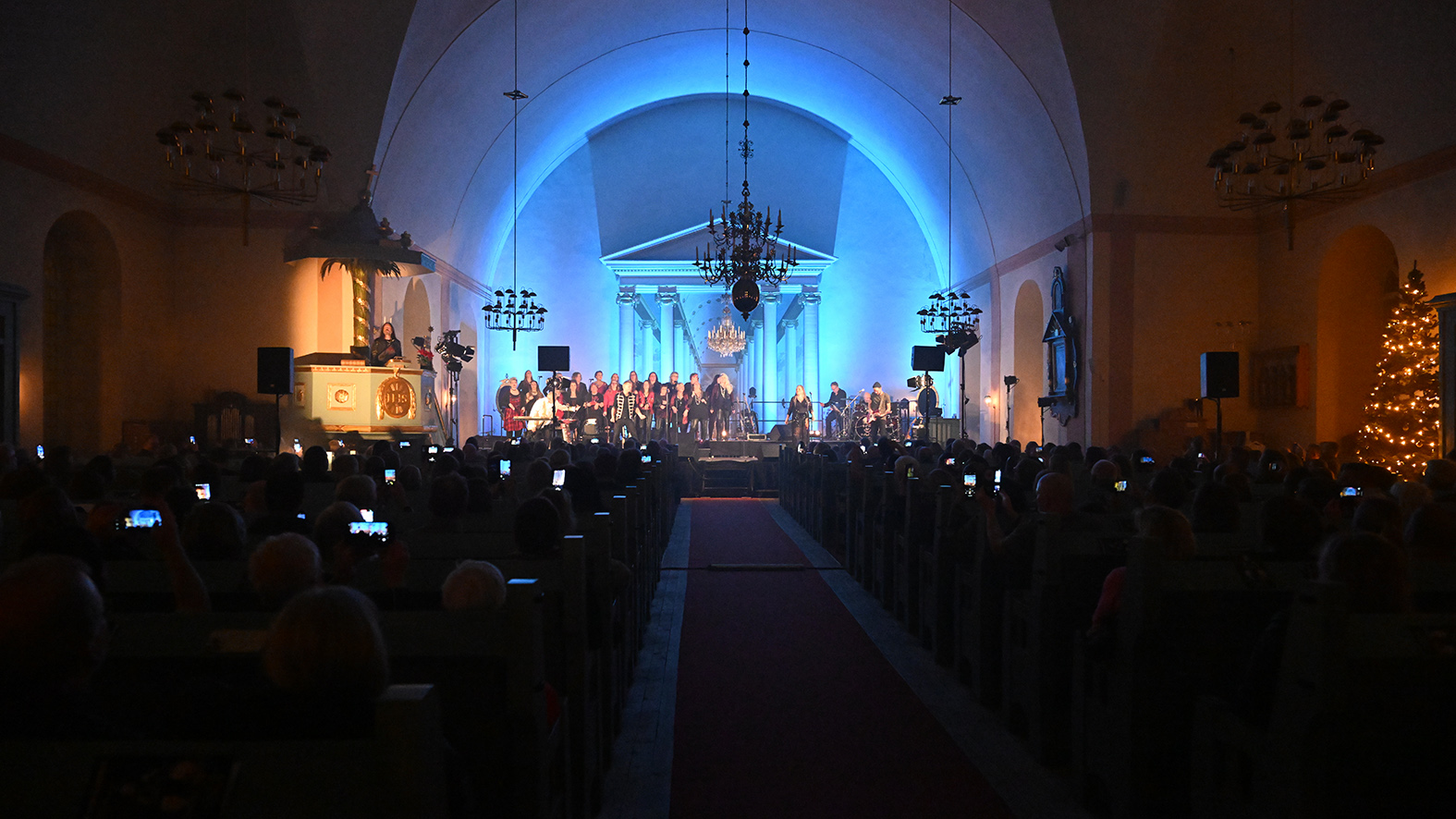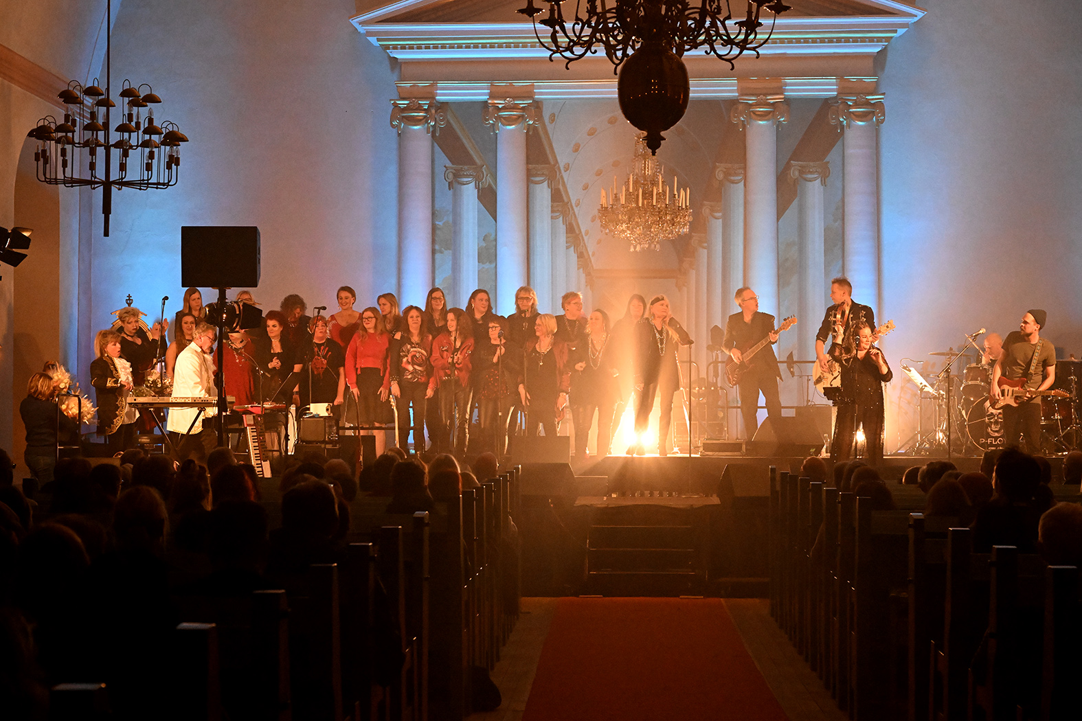 Kvällen i Sollerö kyrka var igång och utöver musiken fylldes salen med ljus från strålkastare som färgade valven.