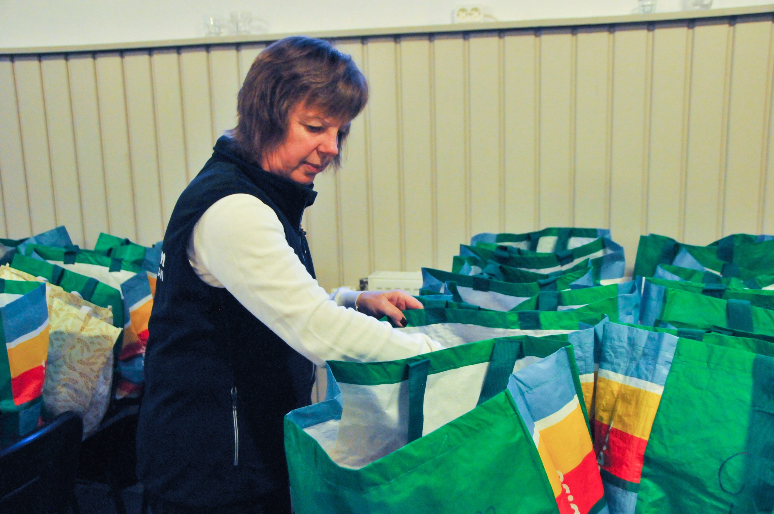 Hjälpkassen drog igång för sex år sedan. I varje kasse finns mat och förnödenheter till de som behöver det. I början var det bara 16 kassar som delades ut i Centrumkyrkan. Sedan dess har allt vuxit till något mycket större. Idag delar den ideella verksamheten ut över hundra kassar varje torsdagsförmiddag.