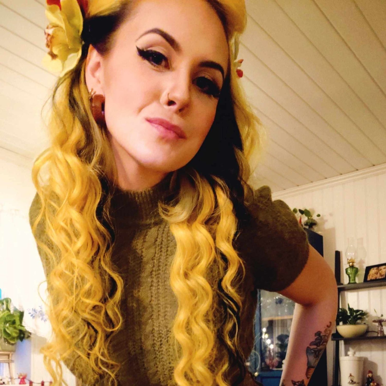 Hon verkligen älskar 50-talsstilen och klär sig i såna kläder även till vardags.