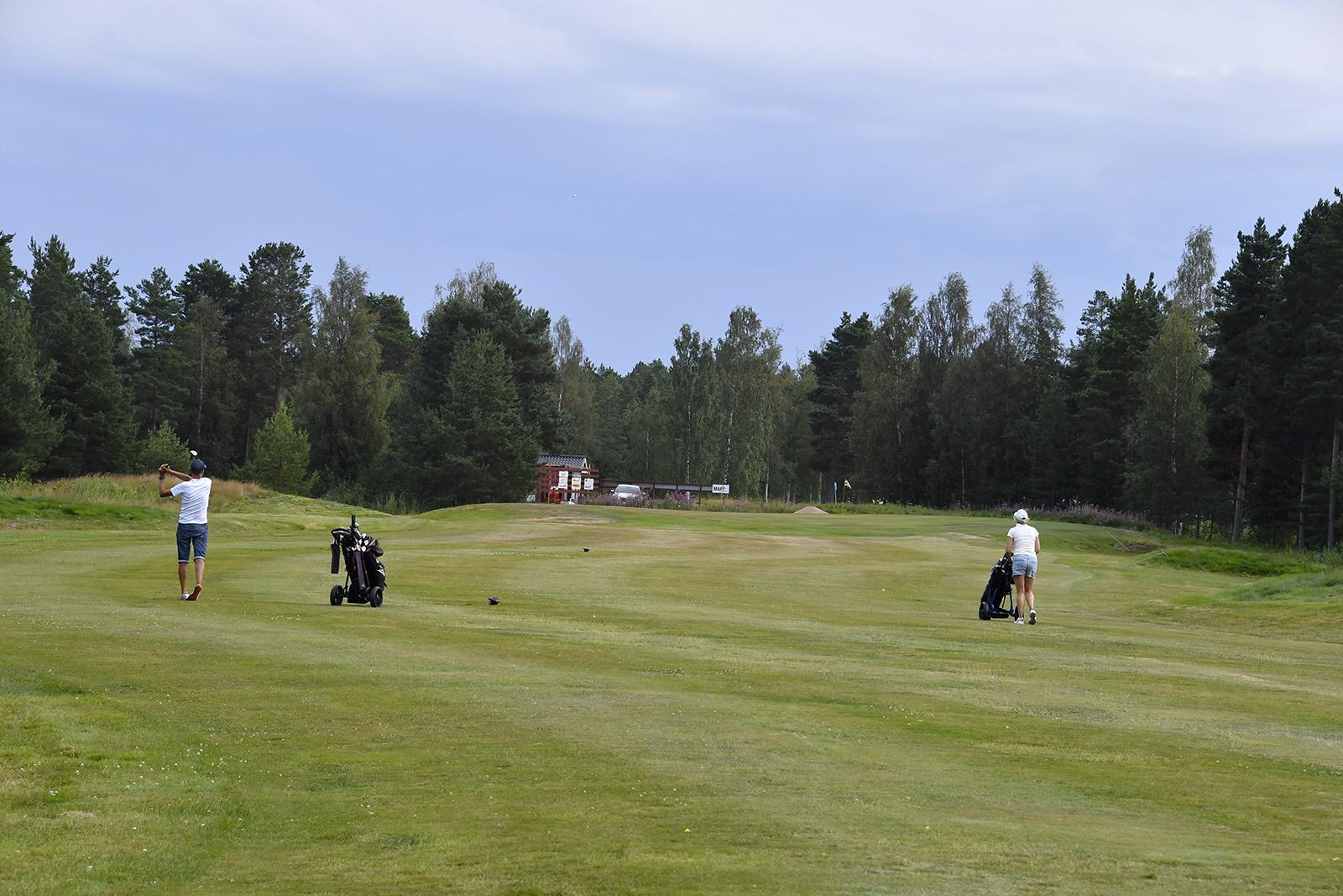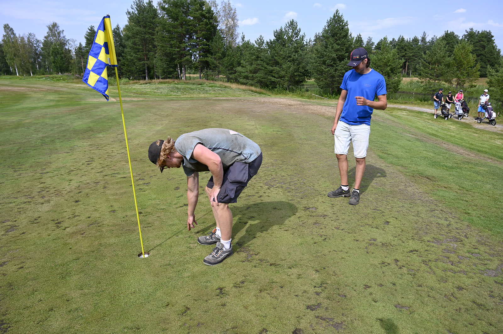 — Egentligen är fairways bättre än på många år, trots att vi inte har någon bevattning ännu. Ett års vila gjorde faktiskt fairways gott, säger Linus, så inget ont som inte har något gott med sig.