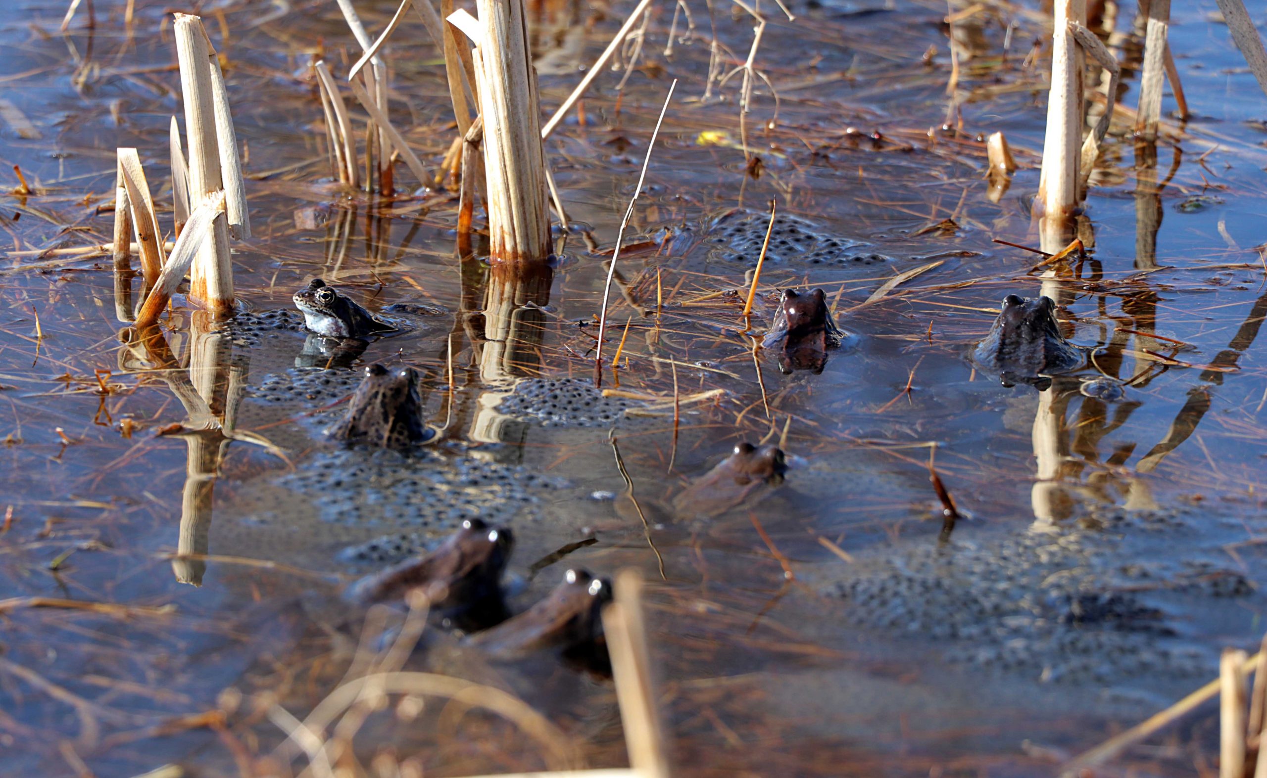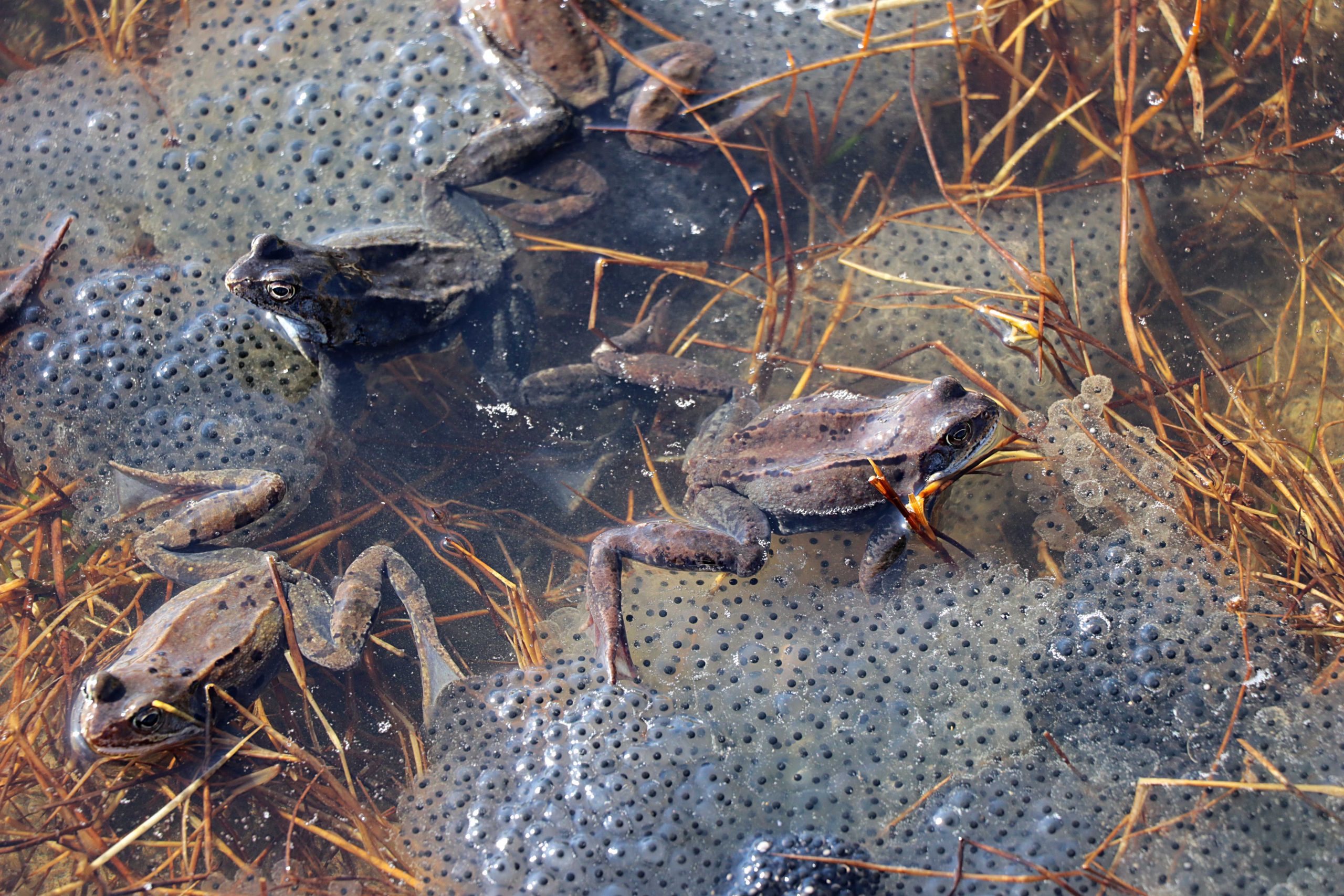 Grodornas parning i Agnmyren är kort och intensiv. De kommande dagarnas väderomslag gör att leken kommer att avta.