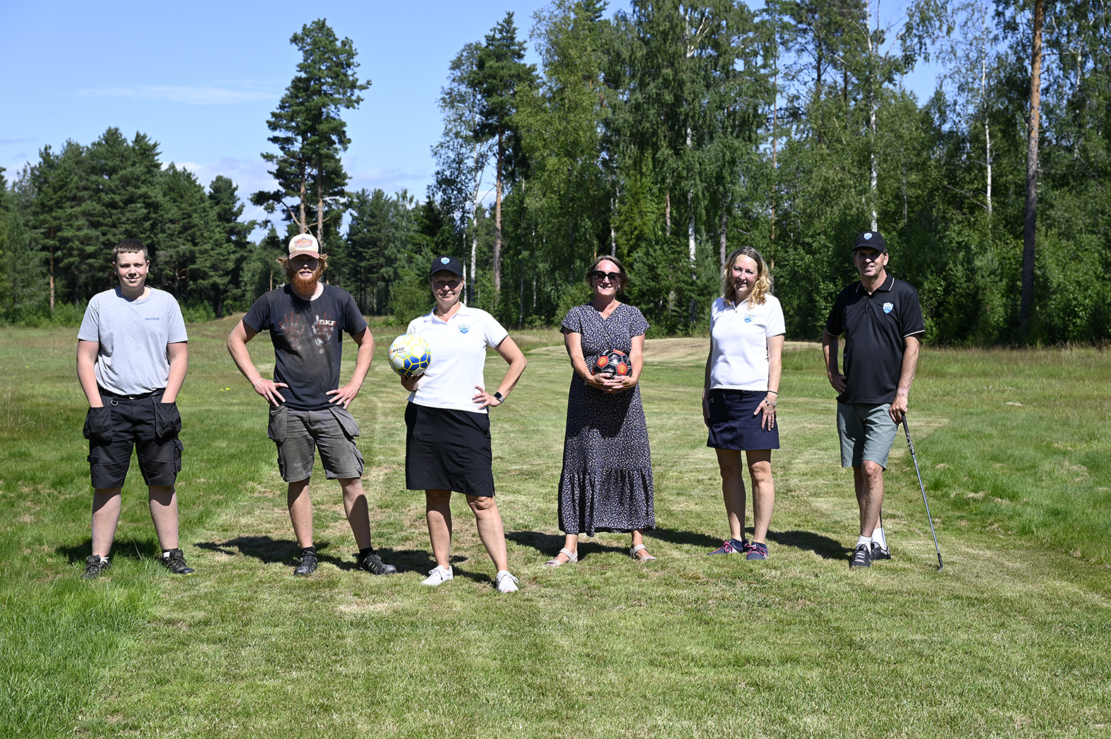 — Det här blir en bana för allmänheten. Här kan man ha till exempel ha barnkalas med saft vid vår nya solaltan vid övningsområdet och sedan spela fotbollsgolf, säger Pernilla Widstrand som är kassör i en paus av gräsräfsning.