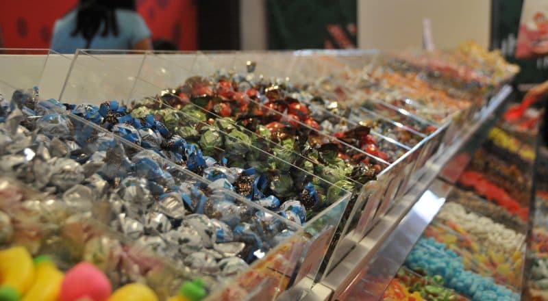 En trappa ned väntade sedan ett överflöd av godis förpackade i rader av lådor, snacks på hyllorna och festprodukter i ett hörn. 800 olika sorters lösgodis på 400 kvadratmeter var knappast nog för att stilla det begär kunderna verkade ha efter sötsaker.