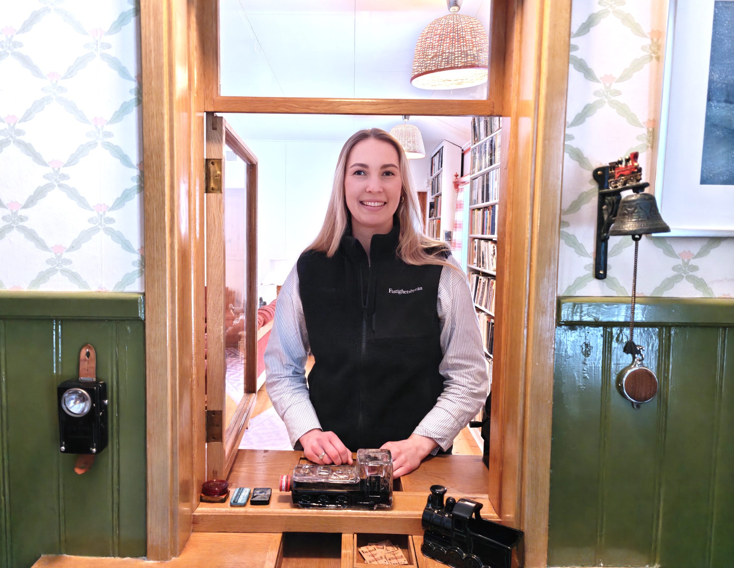 Fastighetsmäklare Alva Mjöberg visar runt i den stationsbyggnad som varit till salu sedan november 2025.