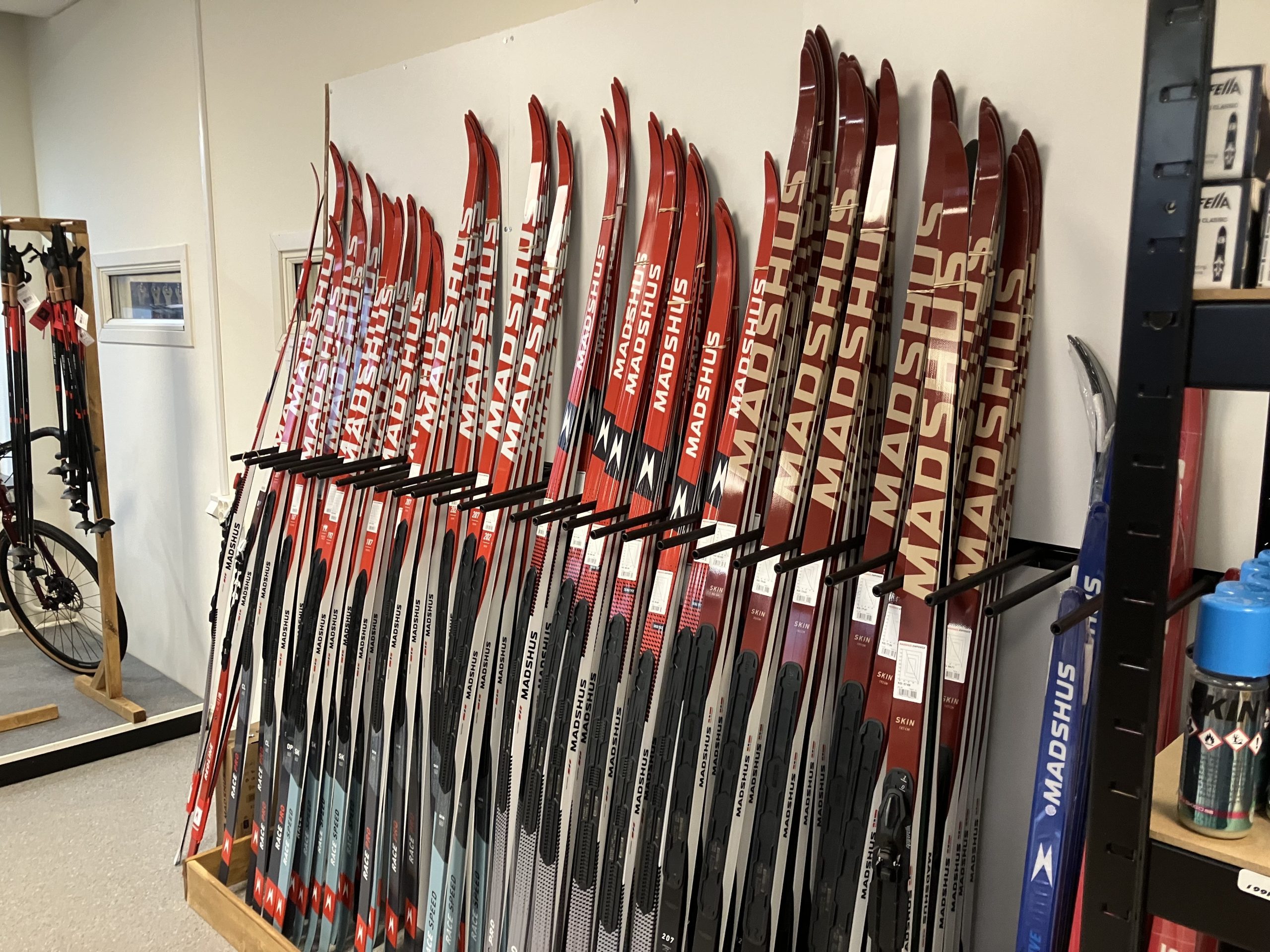 Dessutom har Göran ett längdåkningsintresse, vilket också det syns i butiken med skidor och tillbehör på hyllorna.