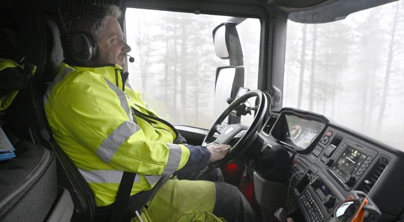 Den stora lastbilen rullar ut från lunchuppehållet i Idre. I hytten är det så gott som helt tyst.