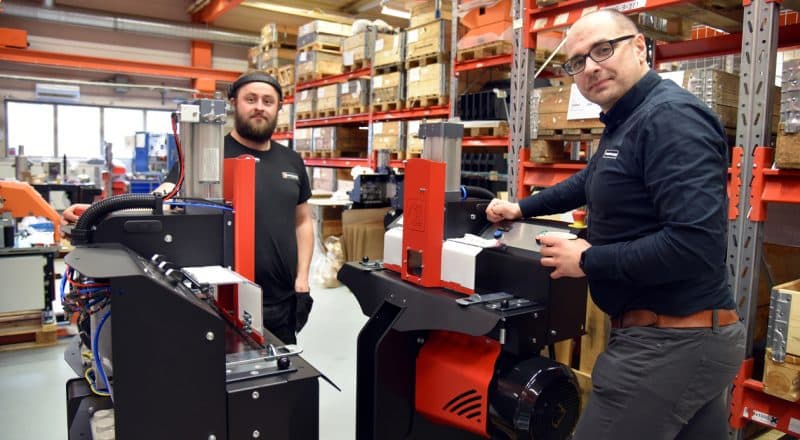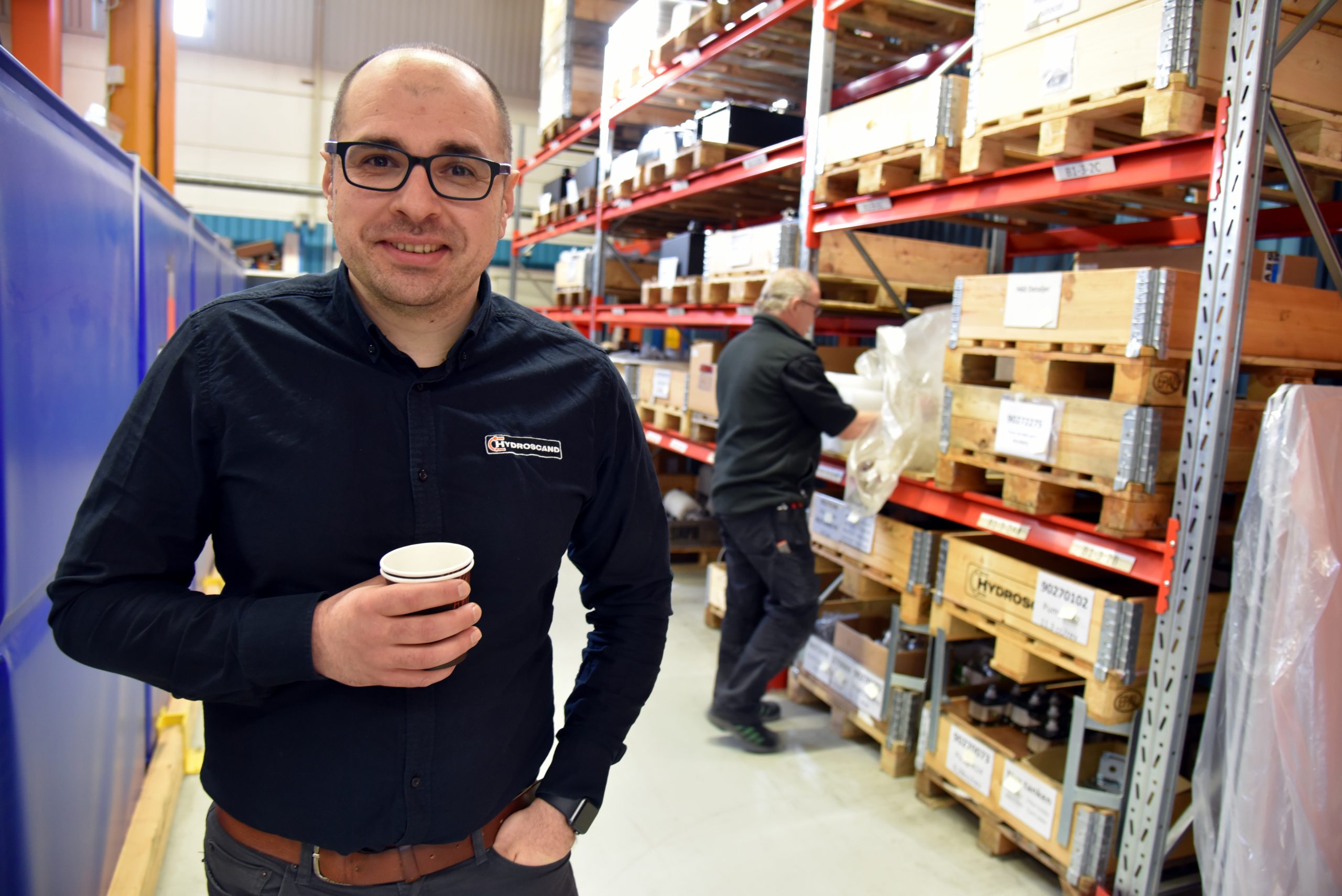 — Hydroscand startade 1969 av Björn Holmström i Stockholm, med att sälja hydralslangar och kopplingar. Under 90-talet fick man affärsidén att man behövde ha egna produkter och egna maskiner och för att kunna hantera snabba kopplingar, alltså pressa, kapa och skala. Och då startade man -94 Hydroscand Macine, berättar Admir Paratusic, medan han visar runt på fabriksgolvet.