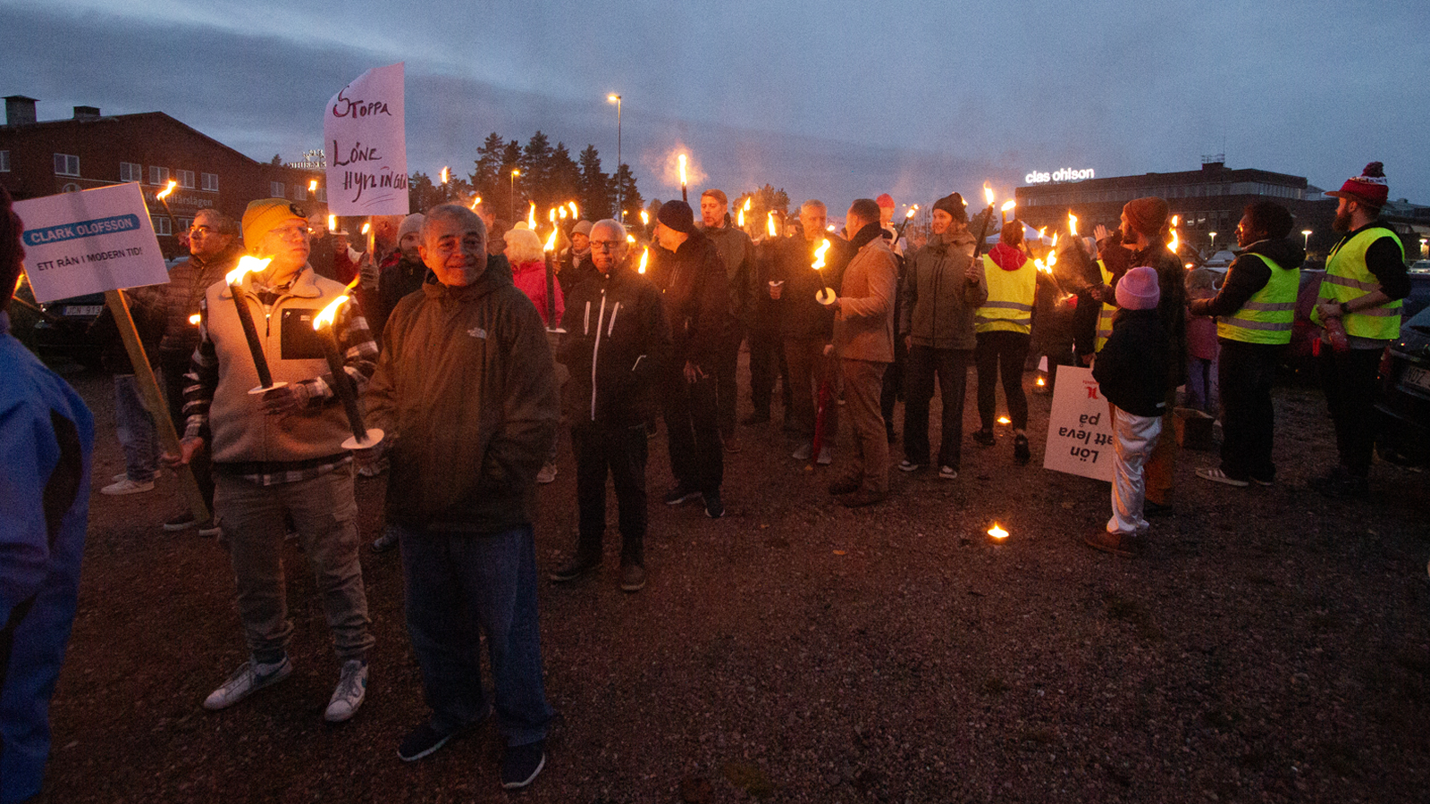 — När vi gick ut med att det skulle bli en manifestation och fackeltåg till lagret i Insjön var det drygt 130 stycken som skrev på Facebook att de skulle komma. Men ikväll är vi uppskattningsvis nästan 300 samlade här, säger Stefan Viknersson.
