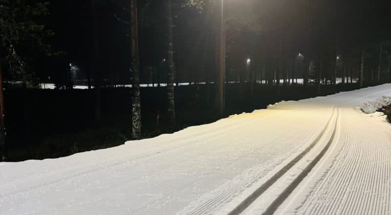 Tisdag morgon fanns det 1,5 km pistat spår och längre ska det bli.