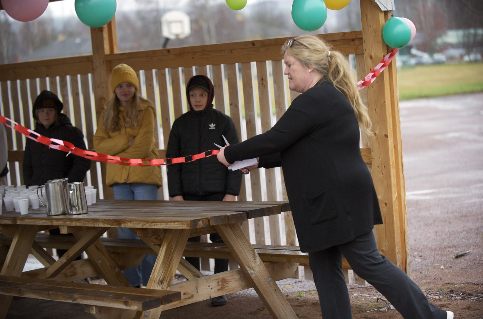 Orsaskolans rektor, Anna-Karin Alfredsson, klippte sedvanligt av bandet som brukar höra till när det är invigning.