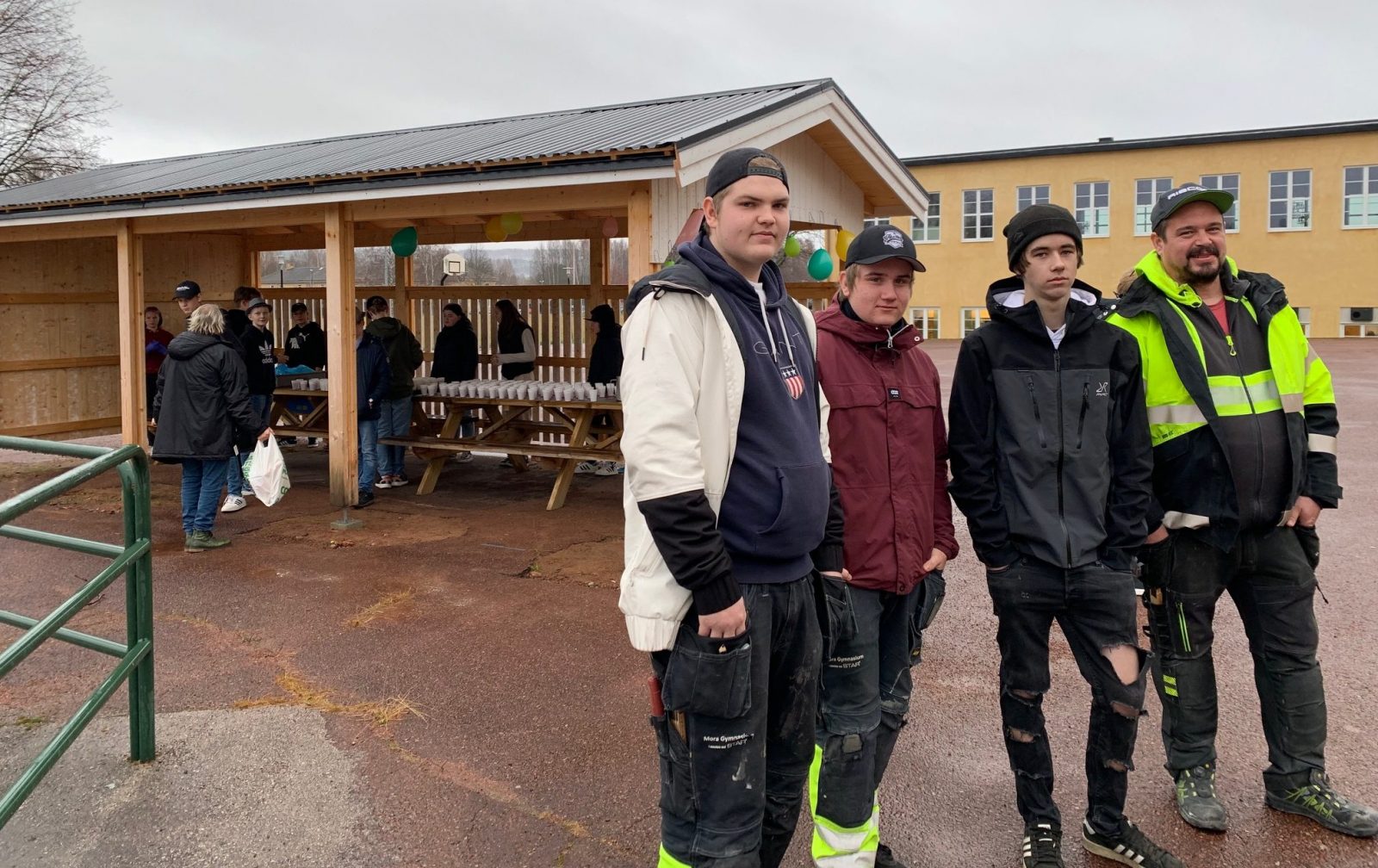 Det bjöds på fika till elever och lärare för att fira det hela. Men även elever från byggprogrammet i Mora som varit med och byggt busskuren var förstås särskilt inbjudna.