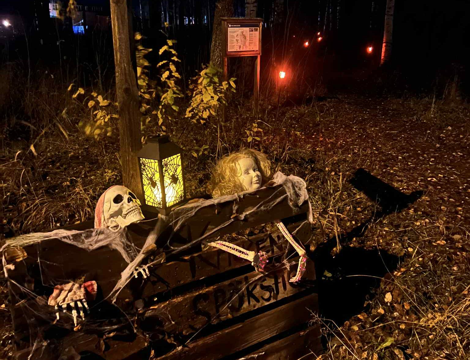 — Det finns ju inte så mycket att göra här i Orsa under Halloween, så vi tyckte det var en kul grej att bjuda in alla som vill att gå. Vi höll på 4-5 timmar med att fixa stigen.