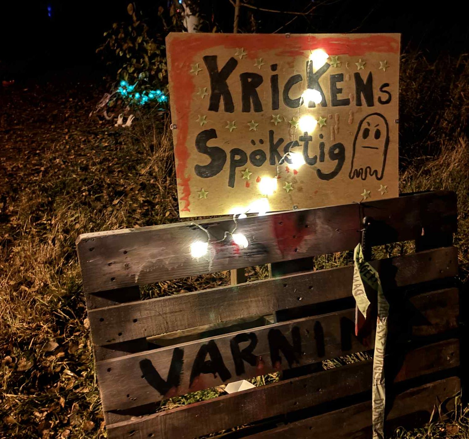 Efter att Elin och Josefine, med hjälp av kompisarna Saga Wiström och Frida Obermüller, som hjälpte till med pyssel innan, så ställdes Krickens spökstig i ordning med massor av skräckinjagande grejer.