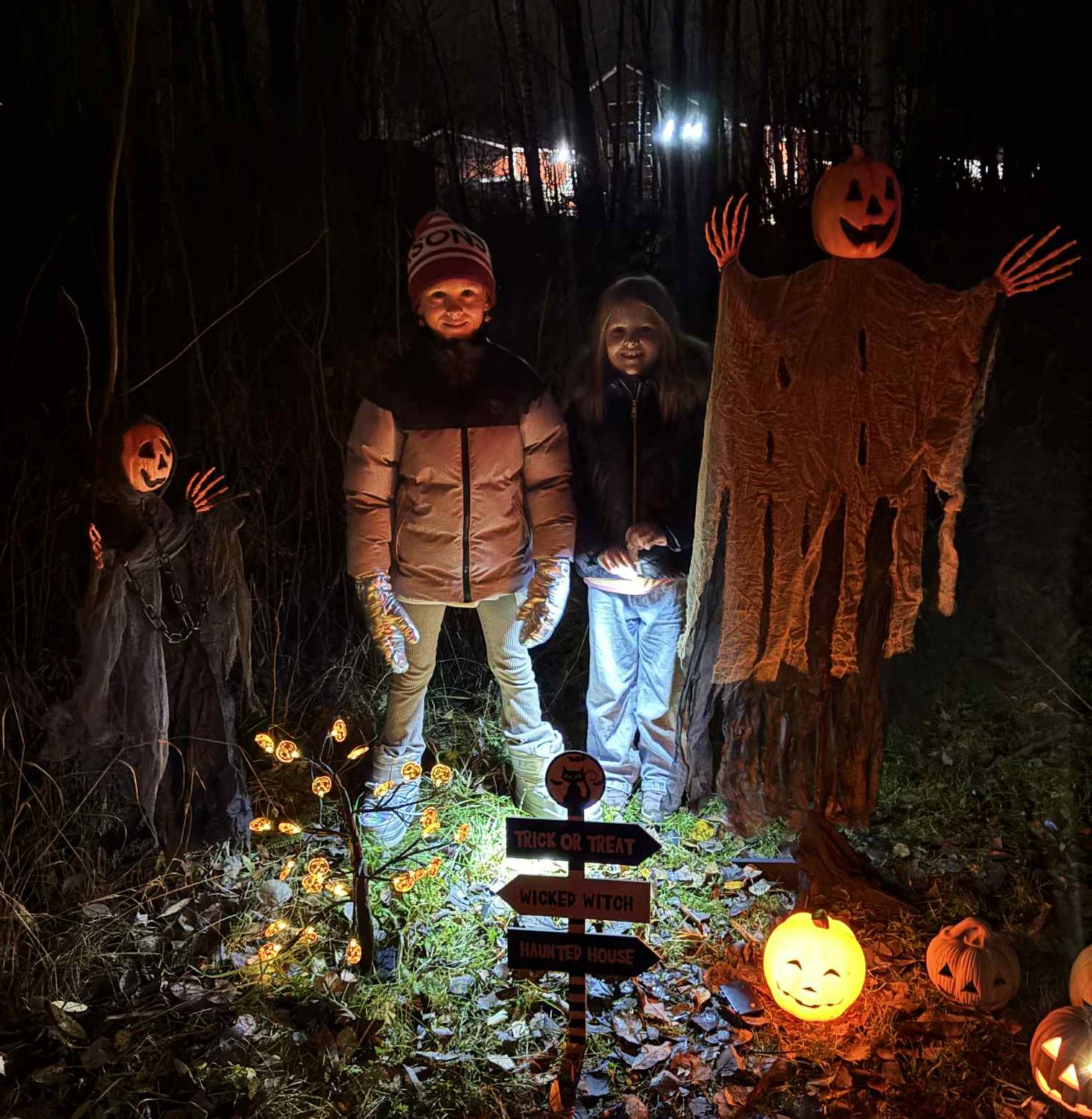Elin och Josefine är idékläckarna till den här spökvandringen. De berättar att de har lagt ner massor av tid och lagt ut några tusen på att få till en skräckfylld stig bakom där de bor efter Krokgatan, i området som heter Kricken.