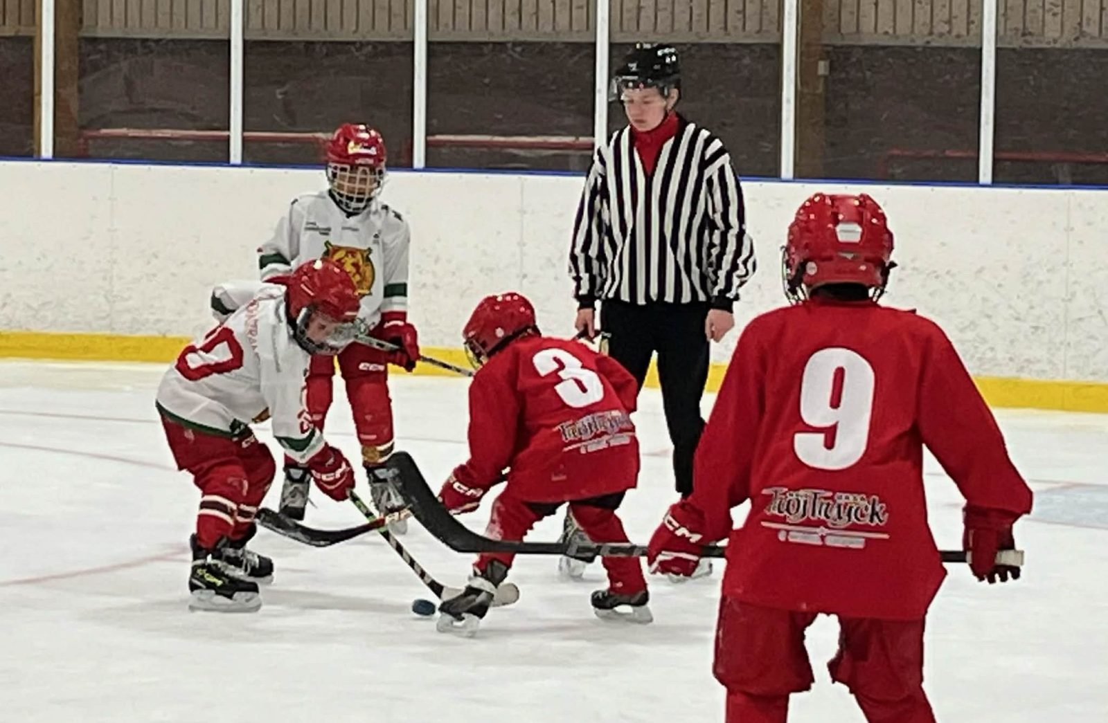 I den här åldern kör man på en mindre plan, 1/4-del av den normala isytan. Med en särskild sarg som är lätt att sätta upp bygger man två planer, så två matcher spelas samtidigt och man spelar tre mot tre plus målvakt. En match är 15 minuter lång.