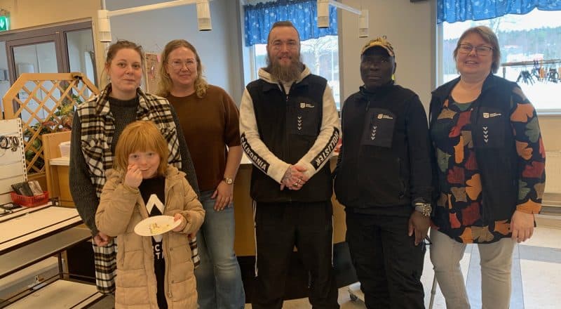 Sedan en tid har butiken inte tagit emot fler prylar och det fanns inte mycket kvar sista dagen, där man hade öppet mellan 12-16. Vid 13-tiden samlades Åsa och de som jobbar på Returbutiken för en sista fika tillsammans innan butiken bommar igen. Det är kunder som kommit med tårta.