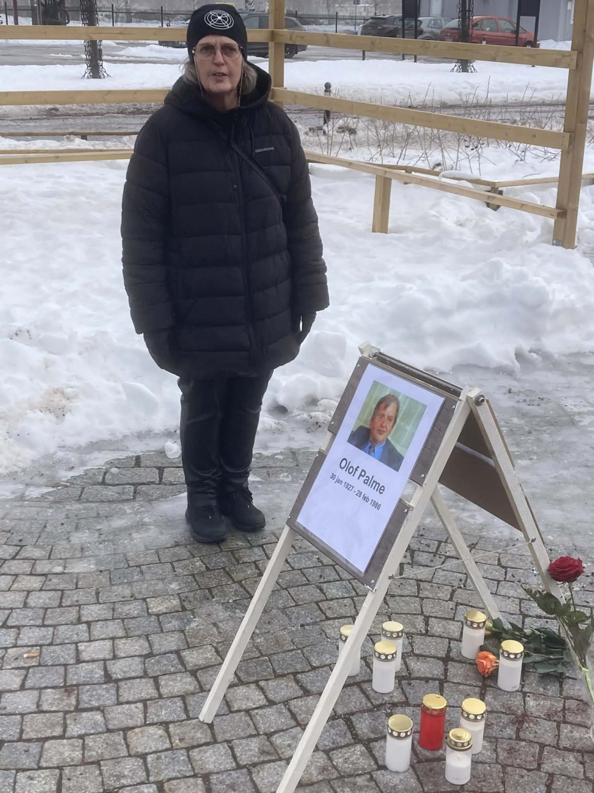 Ett 20-tal hade samlats på Slipstenstorget för att minnas Socialdemokraternas store ledare. Orsas bidrag i riksdagen, Marie Olsson, och Anders Rosell, ordförande för lokala S i Orsa, höll ett varsitt litet tal.