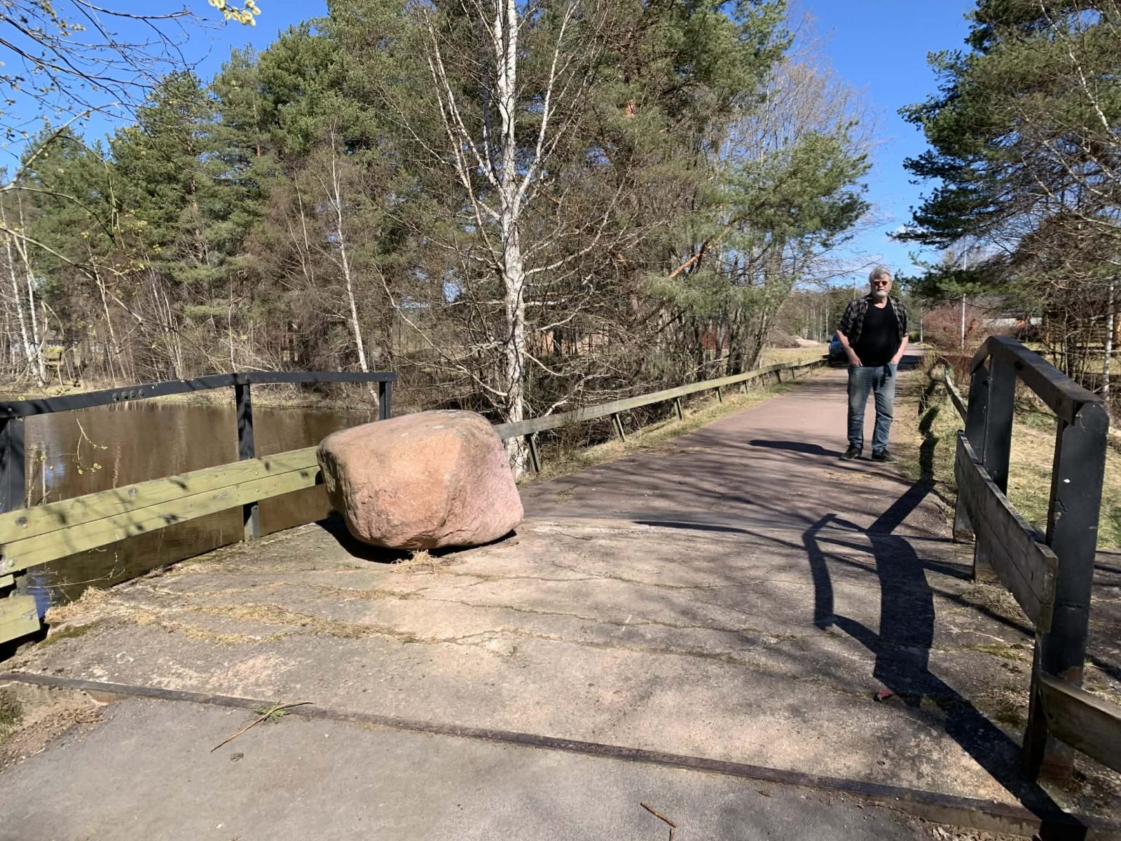 — Det åkte bilar över bron innan stenen fanns där. Jag har till och med sett en bil åka på den där bron, säger Urban och pekar på träbron som går längs Lillån.