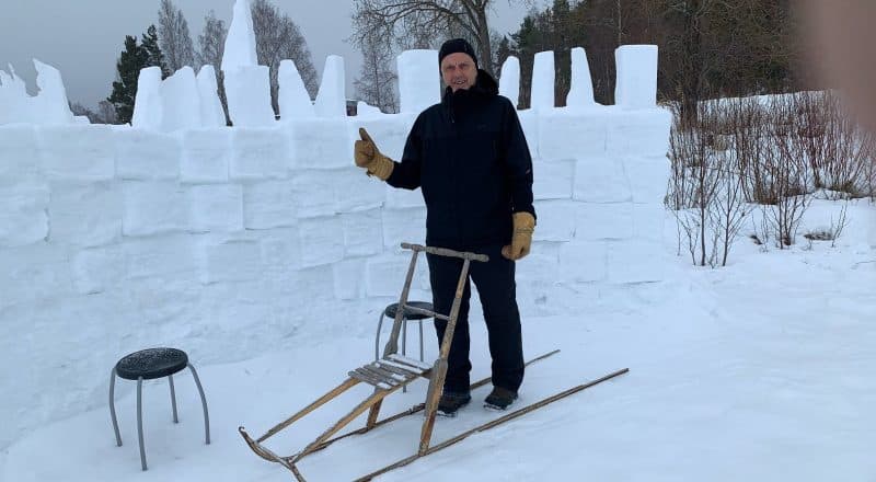 Hur går det då till när Helge bygger sin snöborg? Ja, det är inte gjort i en handvändning, han lägger ner väldigt mycket jobb med att få till det så fint. En förutsättning är förstås att det kommer snö.