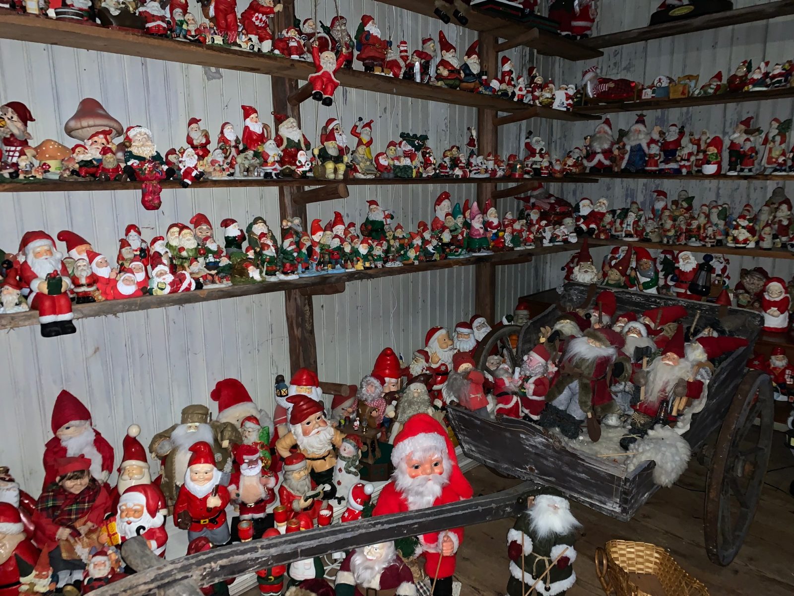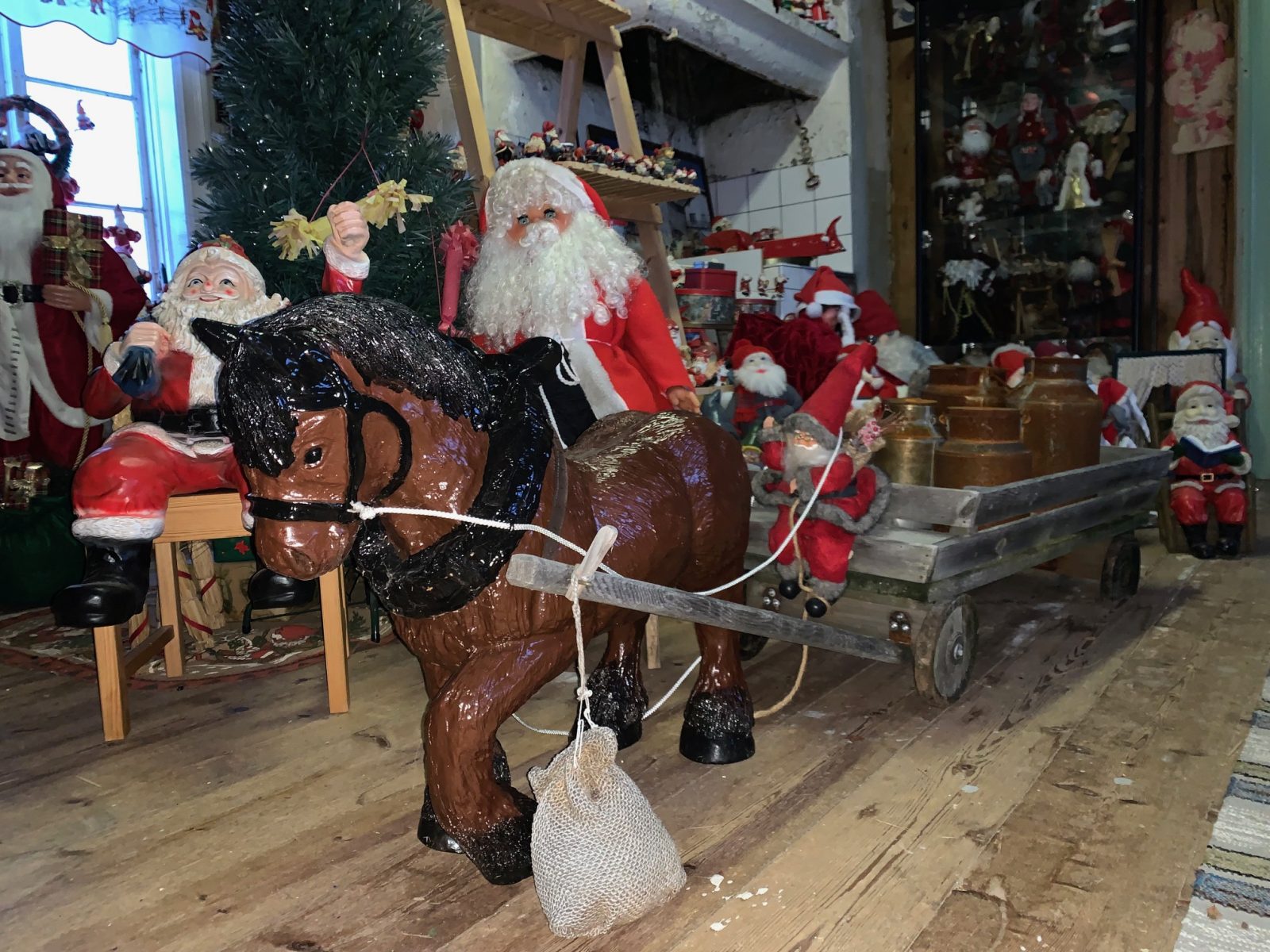 Så där blev det inget köp. Förutom alla tusentals tomtar är Åsa stolt över den arbetshäst med kärra som står i gammelstugan.
