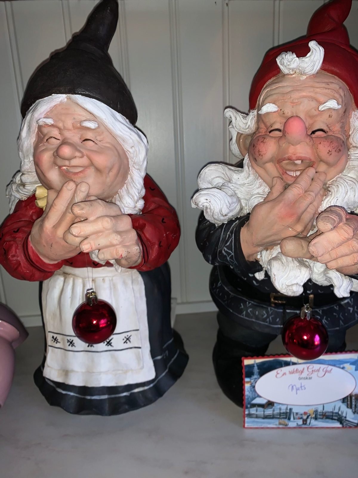 — Men numera plockar vi in dem i gammelstugan. Det är inga riktiga vintrar längre, tomtarna fryser sönder om de står ute när det är dåligt med snö.