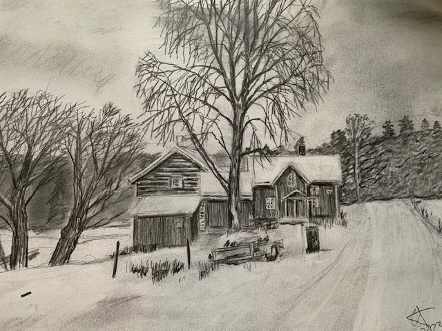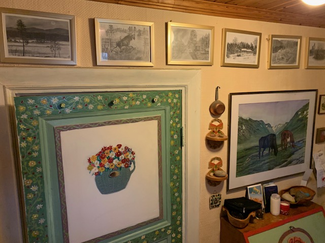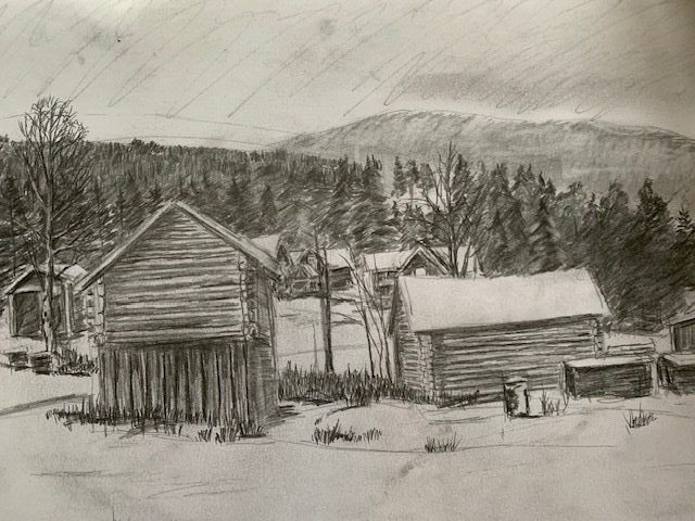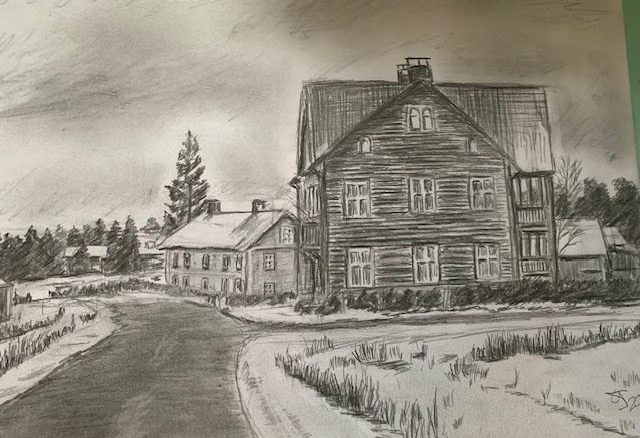 Det är många vackra motiv runt om i Orsa, men också från Våmhus. Han tycker även om att rita norska hus och miljön där och så sent som i går, fredag, var han iväg till Norge, den sista längre trippen i år. Det kom snö under hans besök i vårt västra grannland.
