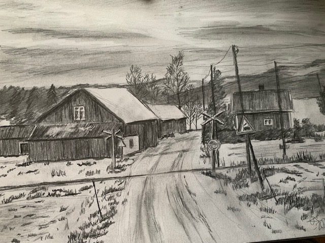 Och så håller han förstås på med sitt ritande och dokumentation av vackra närmiljöer i Orsa med omnejd. Förut målade han tavlor, men nu är det blyerts som gäller. En bra terapi med tanke på allt som Ollie Ahokas varit med om.