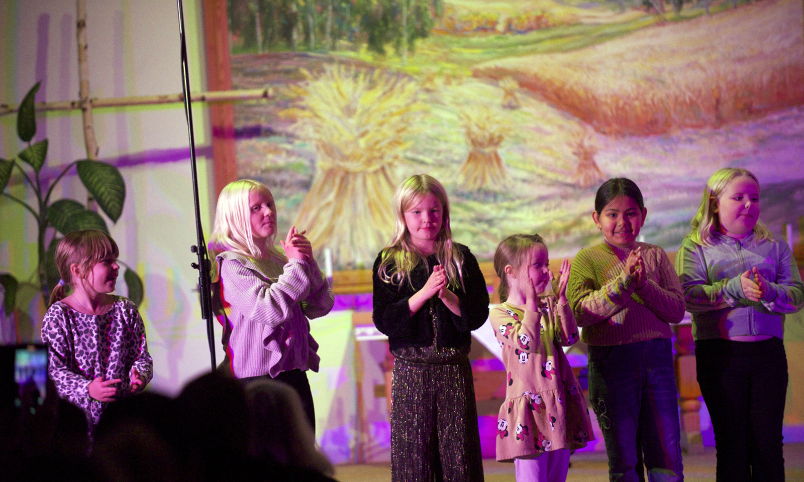 Ett 70-tal barn totalt intog scenen och bjöd en fullsatt kyrka på trevlig underhållning.
