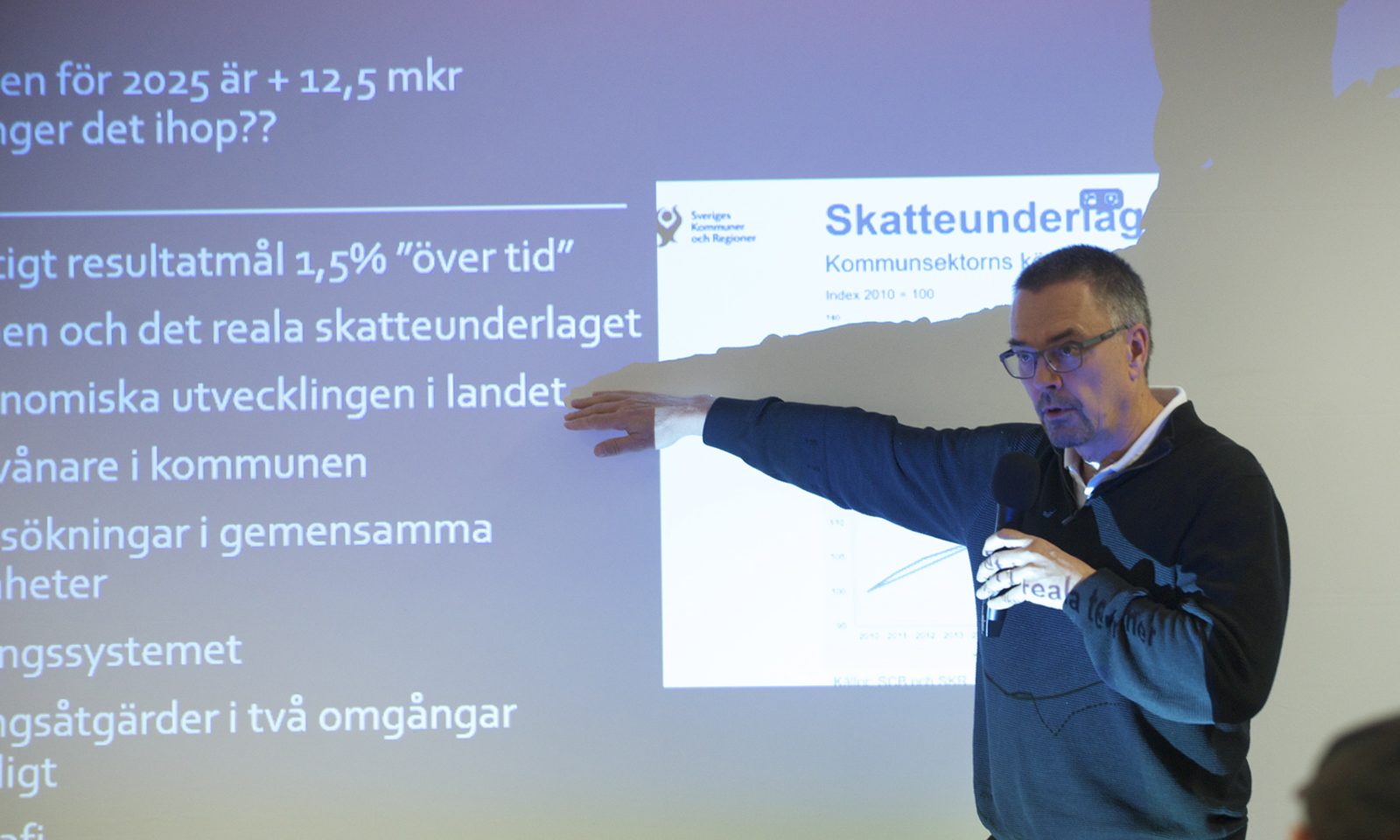 Kommunstyrelsens ordförande Mikael Thalin (C) informerade under kommunfullmäktige varför kommunen måste spara 15 miljoner och poängterade att sparförslaget drabbar många verksamheter.