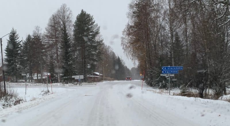 När hon efter en halvtimmes körning i dåligt väglag, kom hon fram till korset där 296:an övergår till länsväg 301, nära Furudal. Där var vägen lika ren som i Orsa.