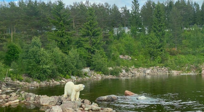 Hon berättar om ugglorna och amurtigern som springer efter staketet och ”morrar” lite. Sedan kommer de till favoritstället för att se isbjörnarna.
