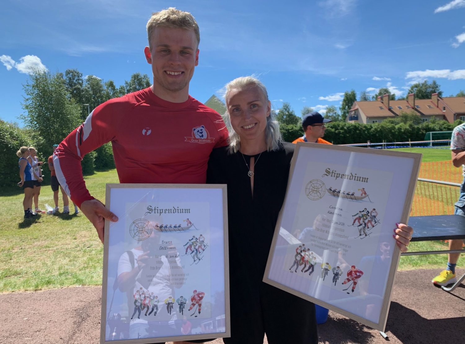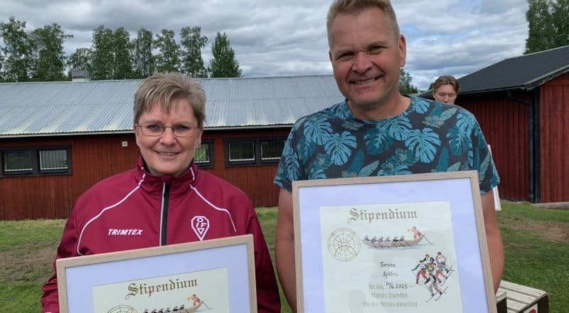 Själva stipendiet, summan som är på 5 000 kronor, fick de dela på. Tomas har köpt ett par nya rullskidor medan frun investerat i nya löparskor. Paret Sjööns är verkligen stora eldsjälar som har många järn i elden. Bland annat håller Tomas i midsommarfirandet på Udden tillsammans med en annan eldsjäl, Hans Lans. Hans som var den förste ledaren att få ta emot stipendiet 2023.
