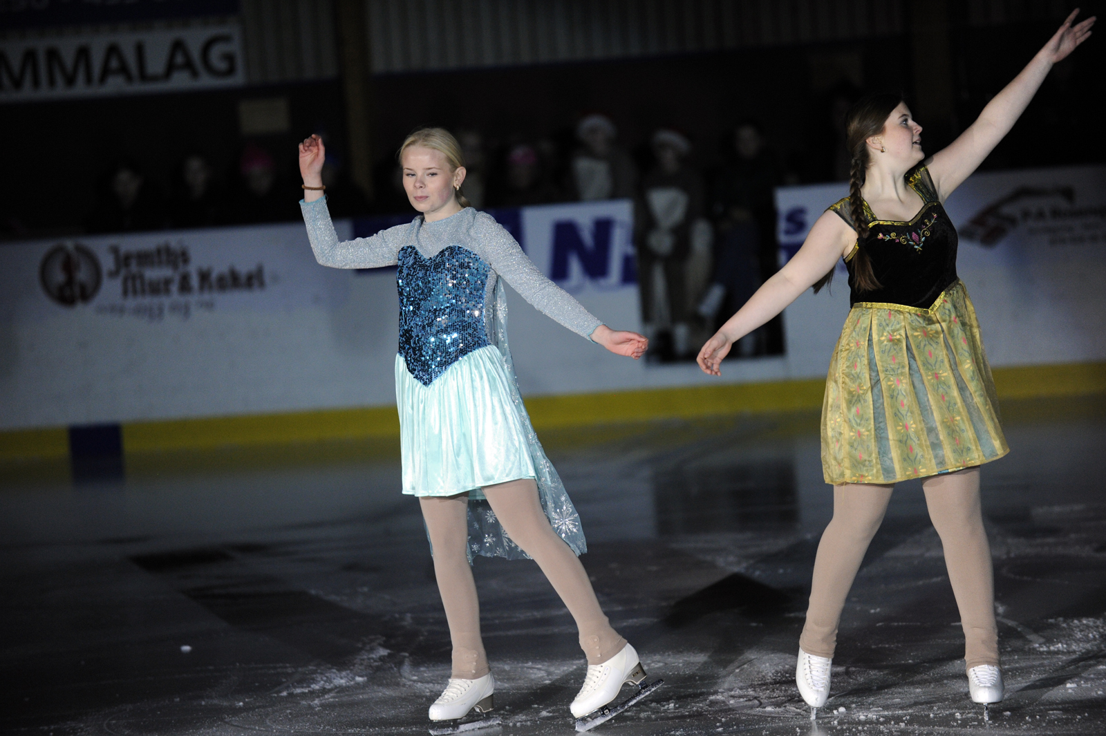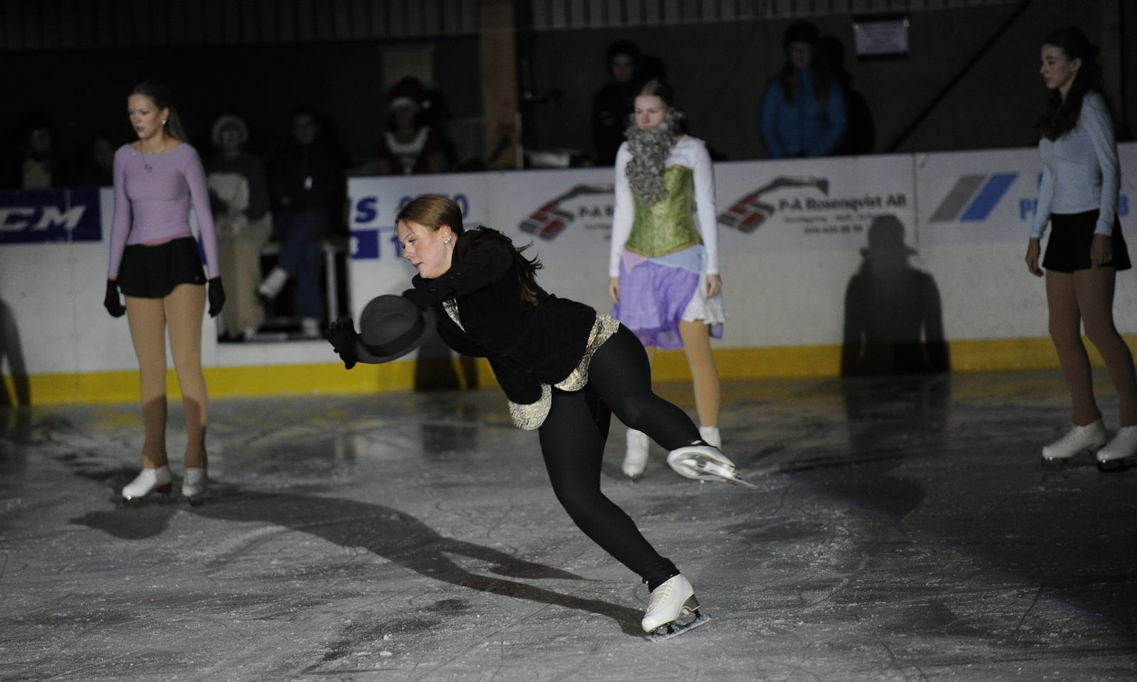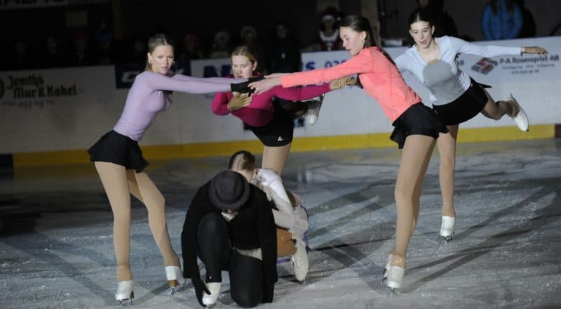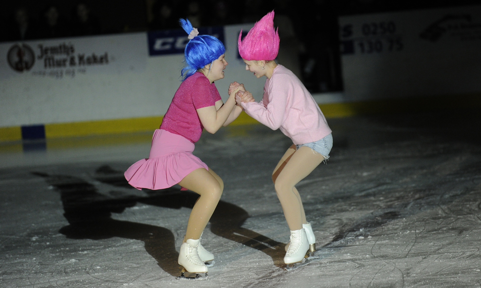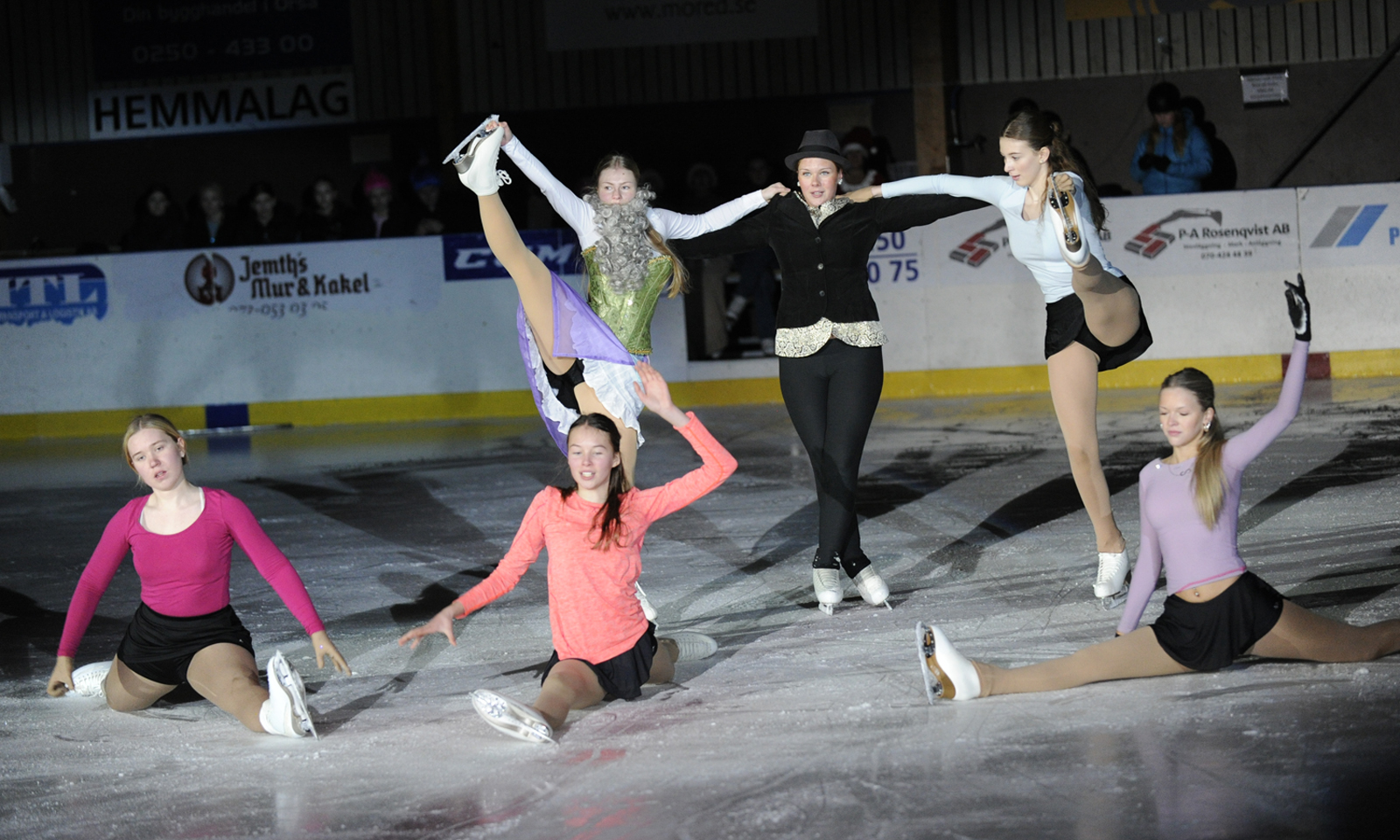 — Det är två akter på söndag, efter fikat blir det extranummer. Alla huvudrollsinnehavare kan inte delta på alla shower, så tjejerna får hoppa in och täcka upp för varandra för att vi ska kunna visa upp alla nummer på alla föreställningar. Jag gissar att vi blir 60-70 åkare som är med på söndag, tippar tränaren Mikaela Spännar.