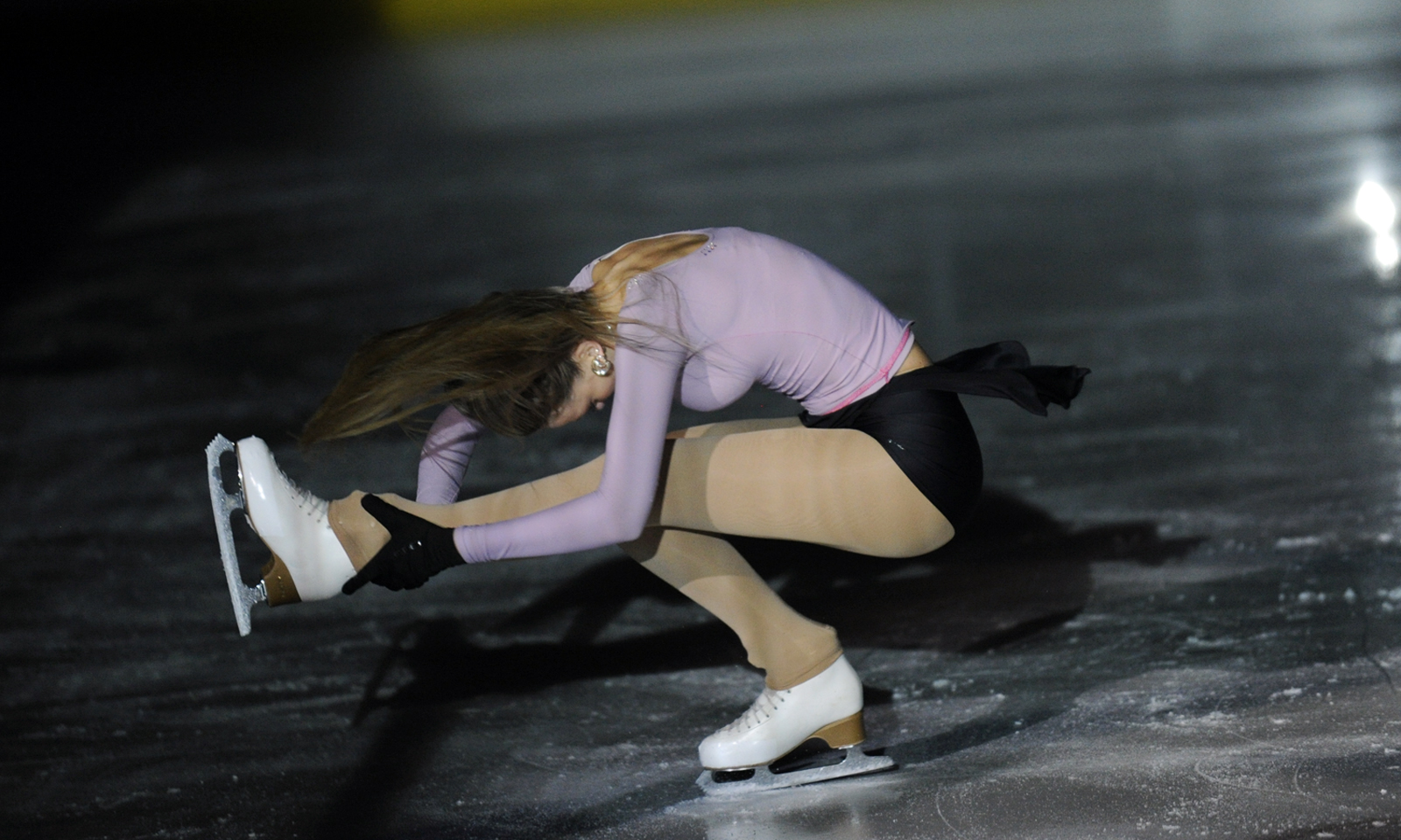— Tomtemor är uttråkad då tomtefar är ute och delar ut julklappar. Hon sitter där i sin fåtölj och tittar i sitt fotoalbum och minns alla sina vänner, säger Mikaela Spännar om handlingen i konståkningsklubbens julshow.