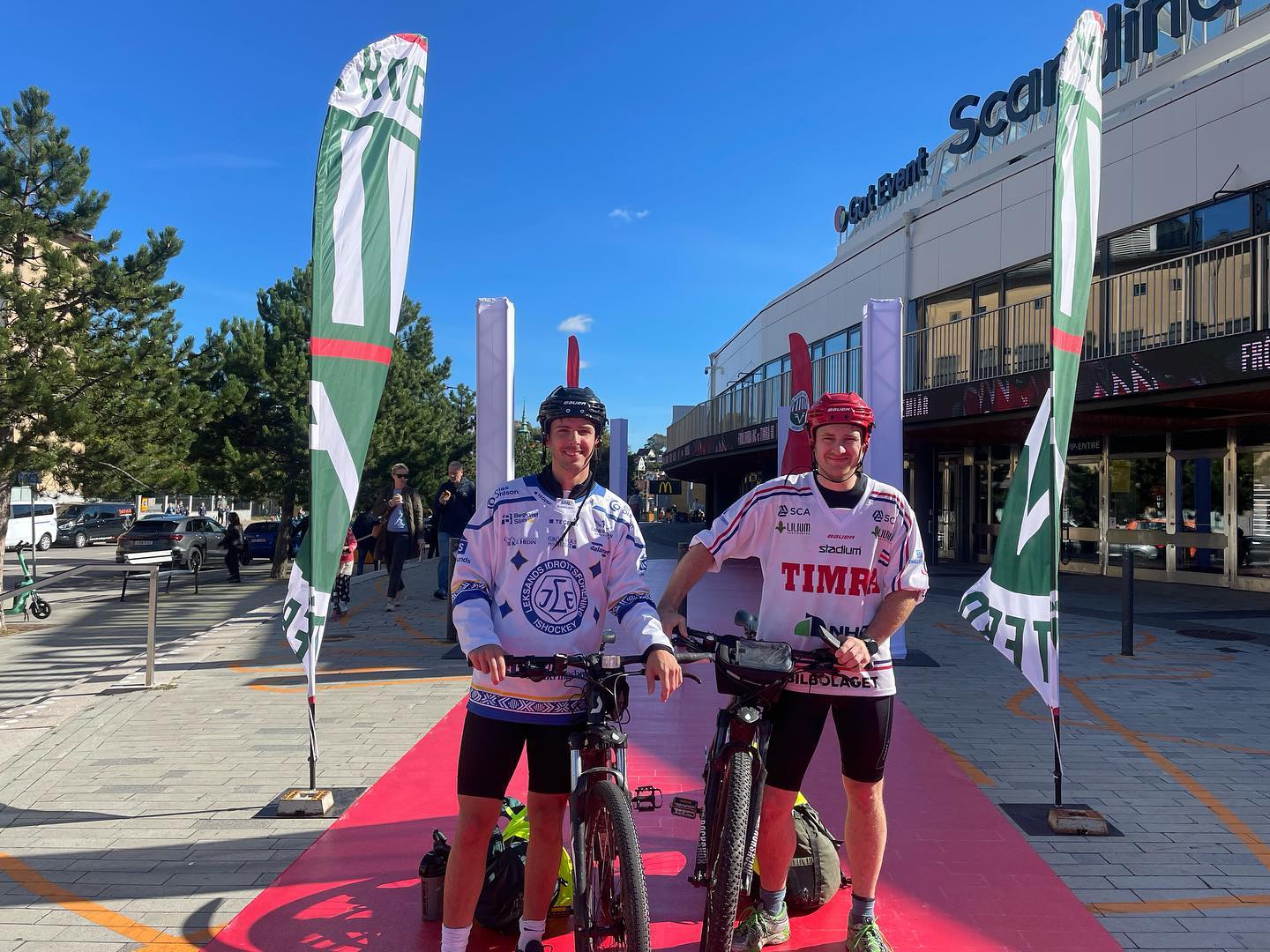 Deras cykeläventyr började med ett vad. Jocke Norlin lovade att cykla till Timrås första seriematch i Hockeyallsvenskan 2020 om det blev så att storstjärnan Jonathan Dahlén blev kvar i landets andradivision med Norlins favoritlag.