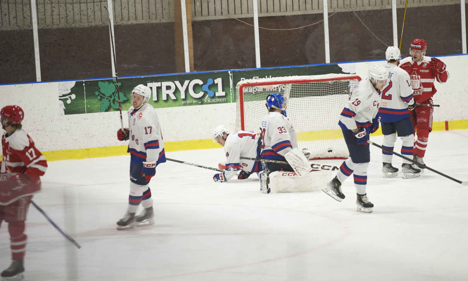 Ockelbo (15p) är på femte plats, precis utanför topp fyra som får spela play off. OIK är på andra plats med sina 27 poäng, tre poäng efter tabellettan Valbo som besegrade Söderhamn med hela 10-2.