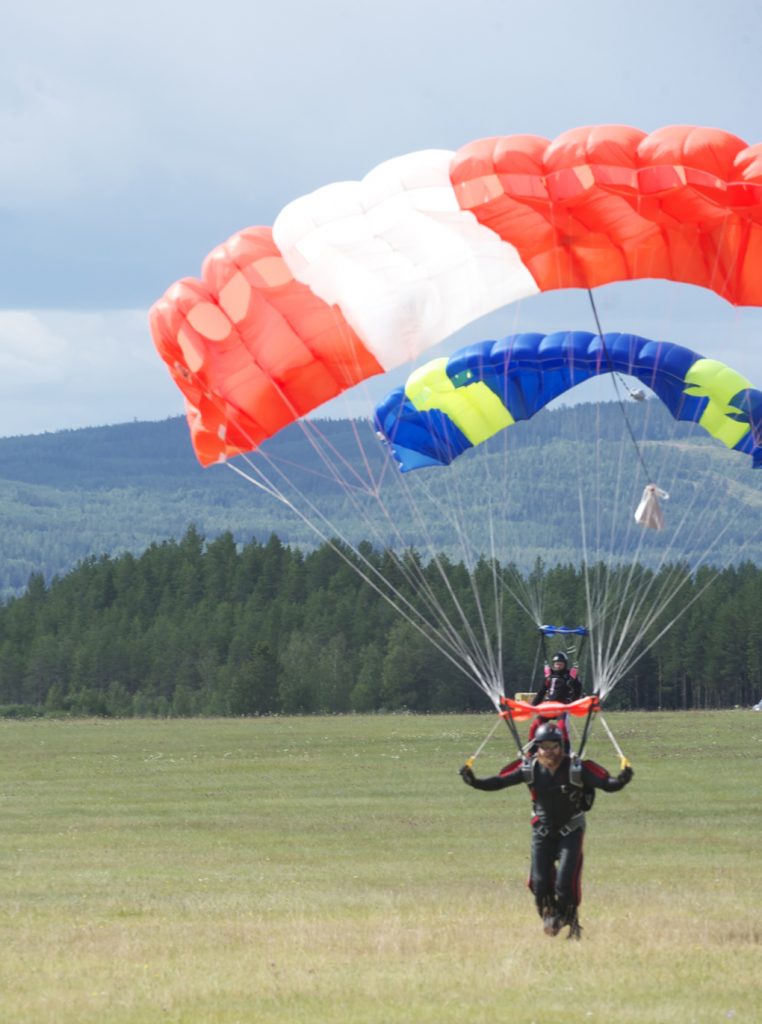 När Fallskärmsklubben Dala har sitt årliga läger på Tallheds flygfält norr om Orsa, ges också möjligheten för allmänheten att prova på så kallade tandemhopp.