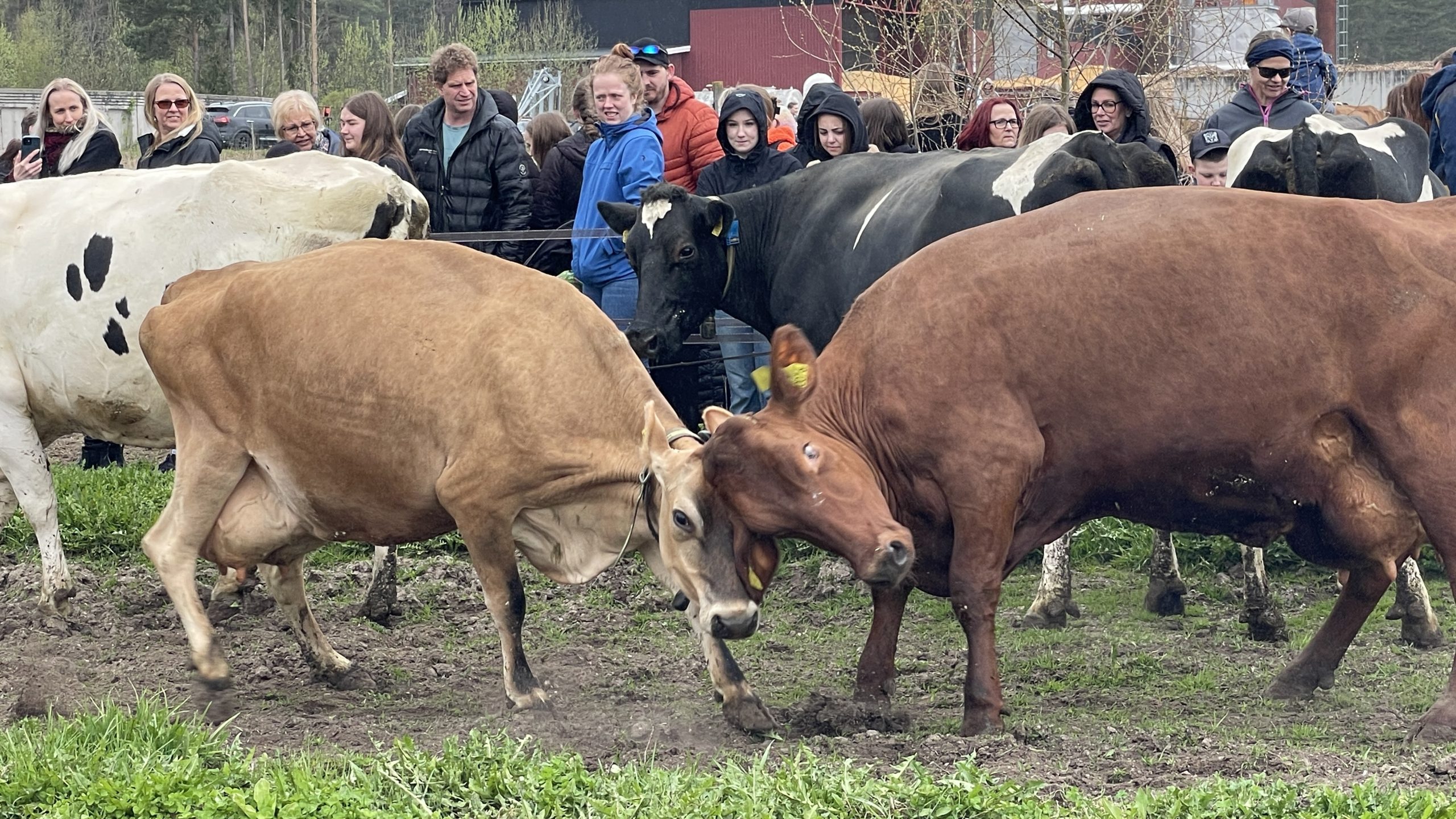 Det verkade även som om korna gillade uppmärksamheten de fick. Några stannade till för att hälsa och förutom glädjen över att komma ut i friska luften efter att ha gått inne hela vintern passade korna även på att mäta sin styrka mot varandra.
