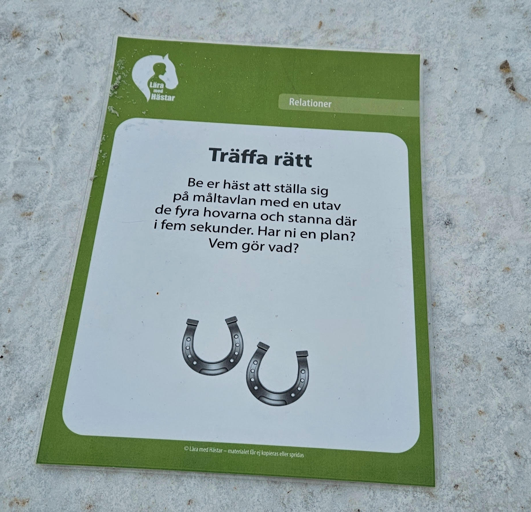 De som kommer hit går ett program på fem gånger där de jobbar med olika teman två och två tillsammans med en häst, som till exempel ledarskap och samarbete. Efter lektionen blir det samling utan hästar för att återkoppla dagens erfarenheter med ett eller ett par ord.