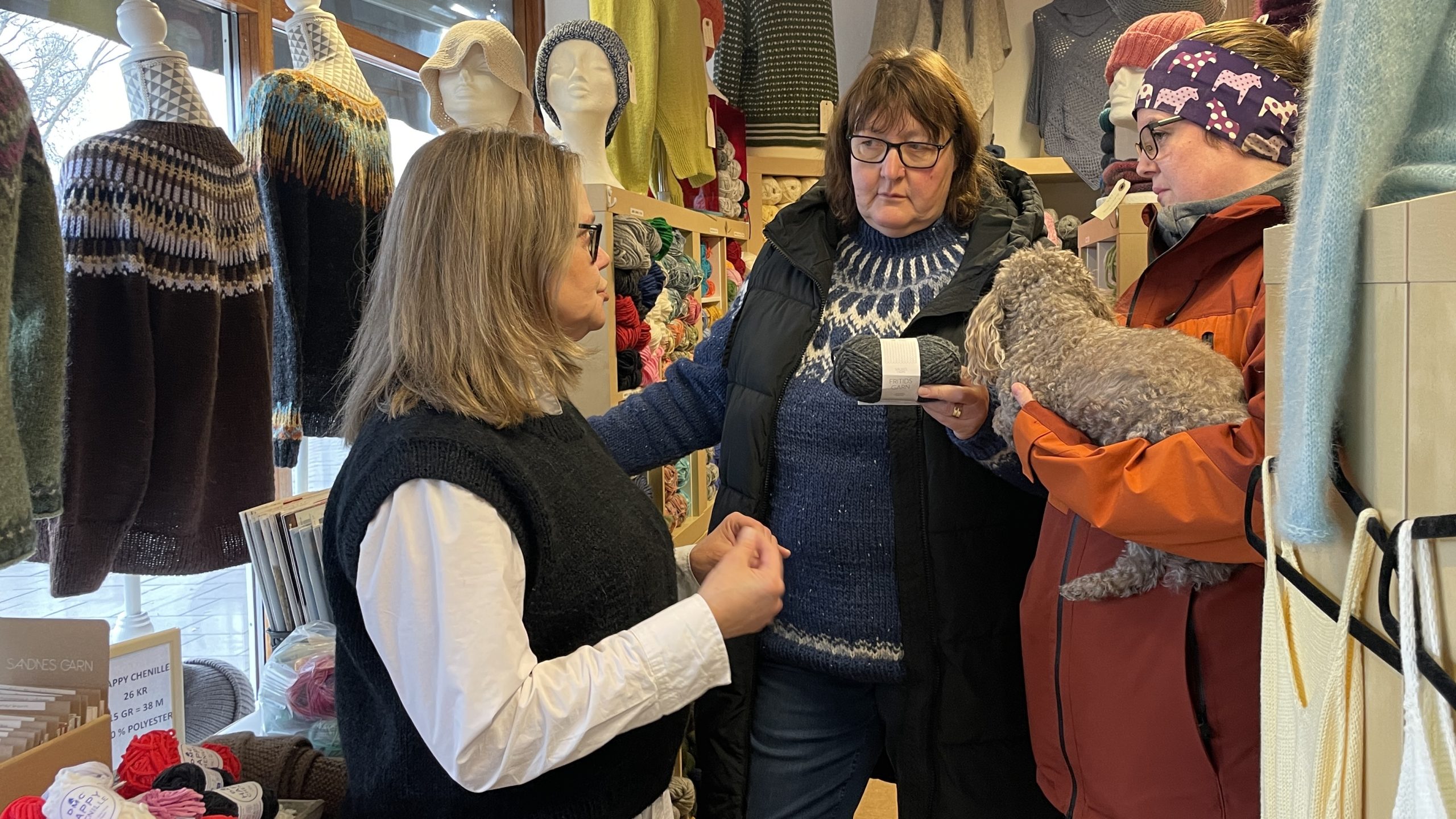 — Här lever byn hela tiden och vi trivs jättebra. Det är många återkommande turister som stannar till och sedan är det en del som tänker att de inte ska ta med sig någon stickning på semestern men ångrar sig och köper stickor och garn.