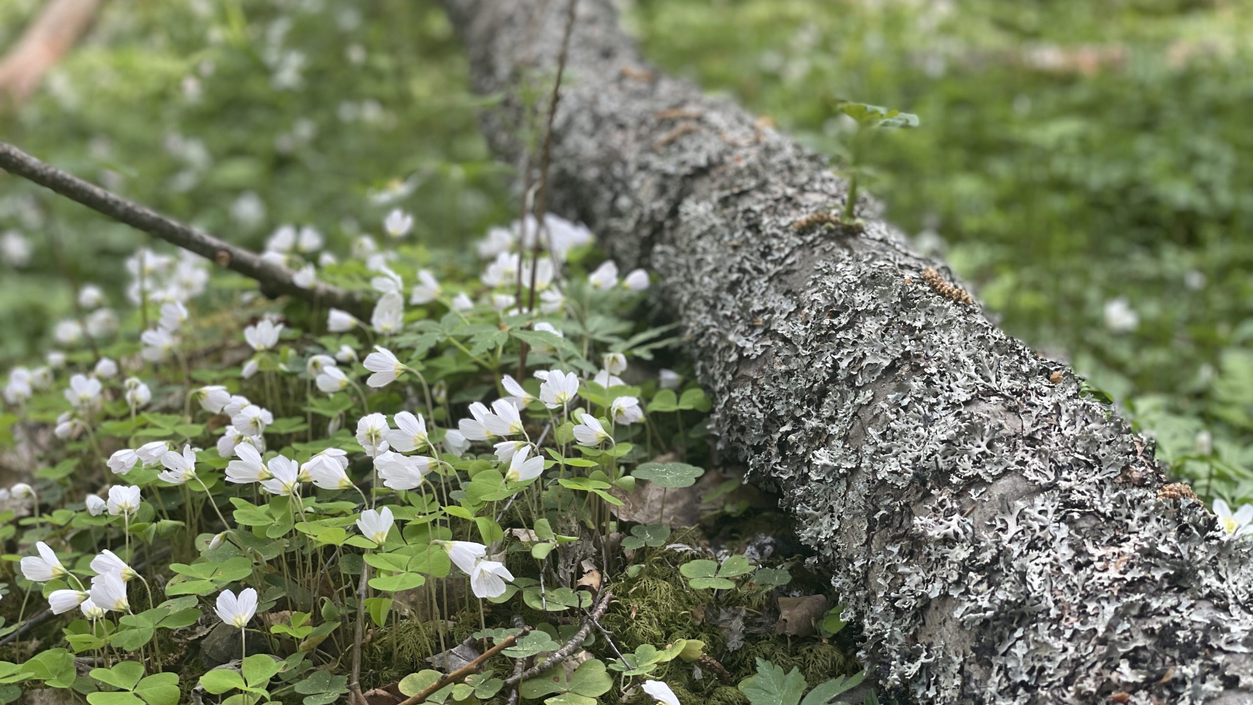 Solen skiner, häggen sprider sin doft och lägger man örat mot marken kan man nästan höra hur det växer. Lövträden har tagit över här i naturreservatet och nu på våren täcks marken av vitsippor och i träden hörs intensiv fågelsång. Just nu skulle vitsippsdalen nästan ha ett annat mer passande namn, för det som sticker ut mer än vitsipporna är gröna blad som om några dagar kommer att sprida en doft av sommar.