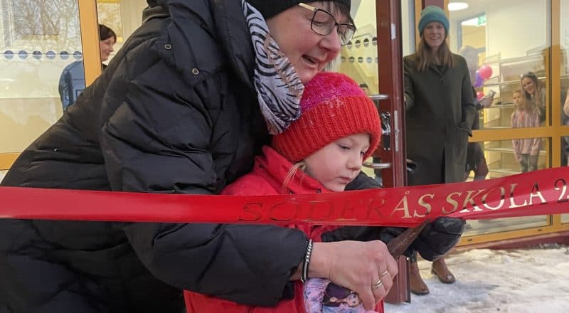 Det var under festliga förhållanden som den nya delen på Söderås skola invigdes under torsdagsmorgonen. Tillställningen inleddes med tal från både kommunalråd och rektor innan det var dags för bandklippningen som Emma Ekeblad från förskoleklassen fick äran att göra tillsammans med läraren Anne Liss Gunnarsson.