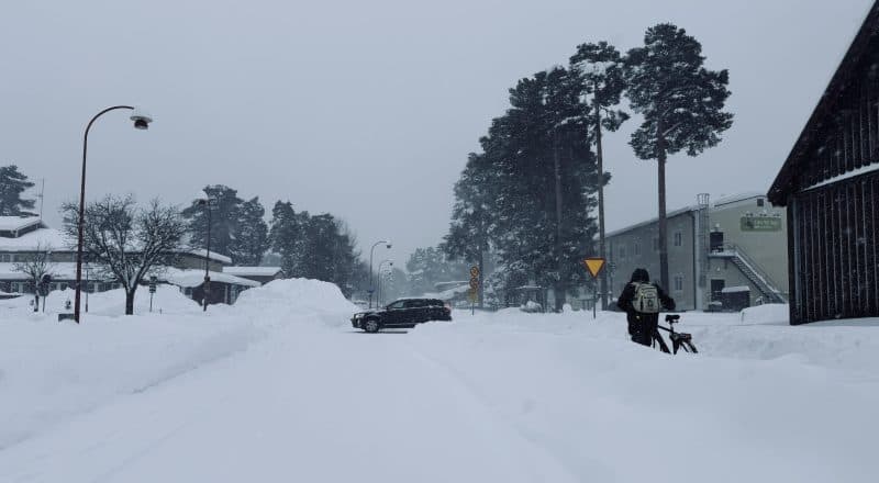 — Vi uppmanar verkligen att man tar det lugnt och försiktigt, för det är dålig sikt så man behöver vara väldigt uppmärksam när man är ute och åker bil. Det har kommit så pass mycket att vi inte har haft någonstans att lägga det, säger Robin Layton, kommunens Vägingenjör.